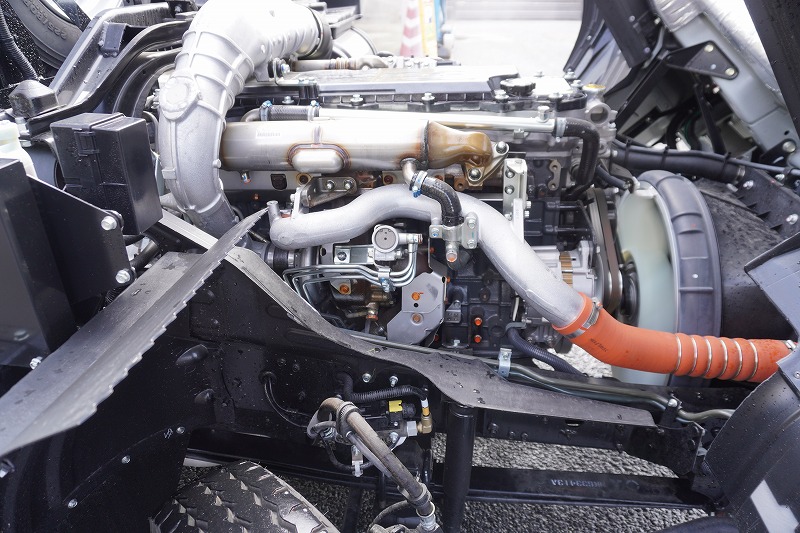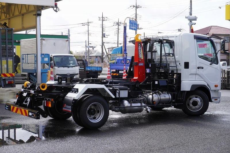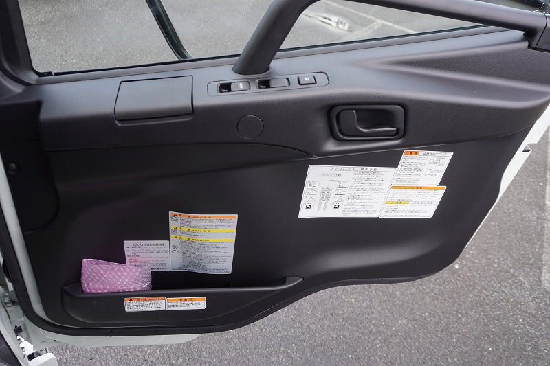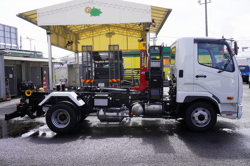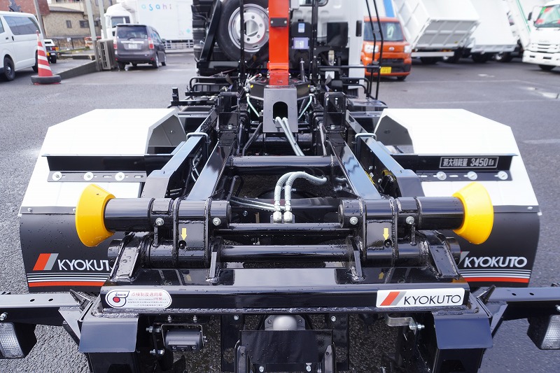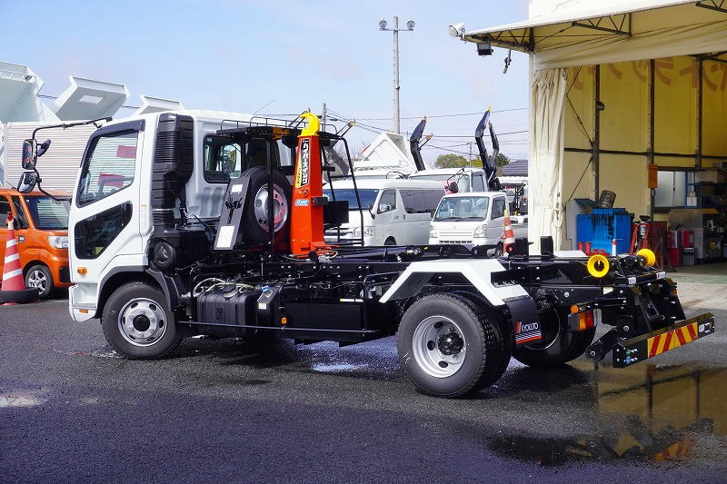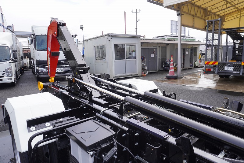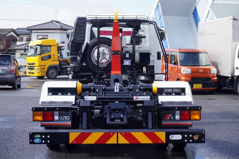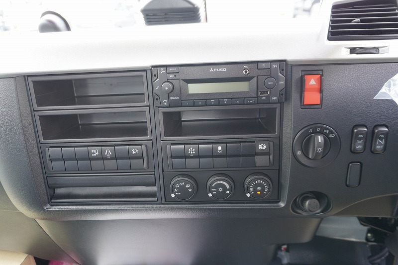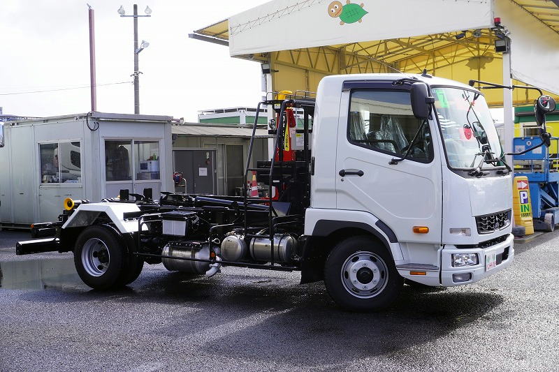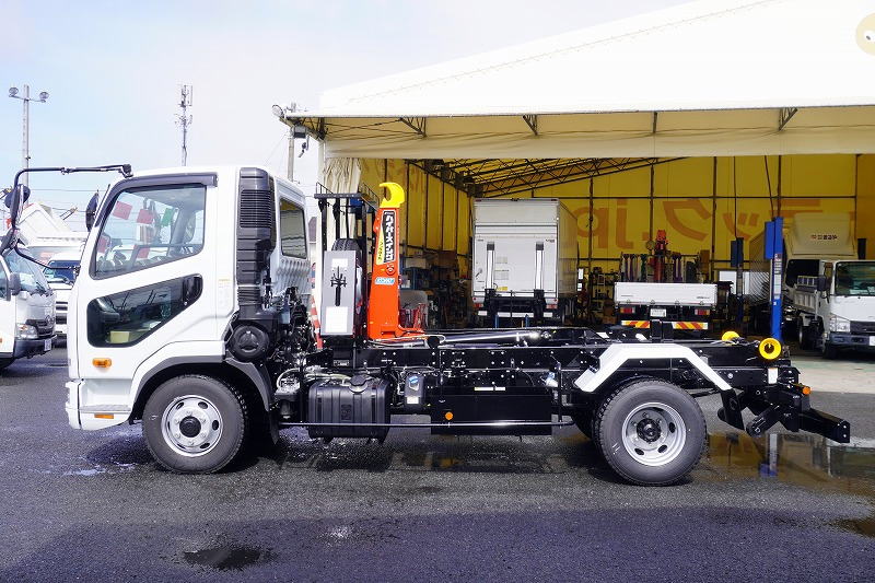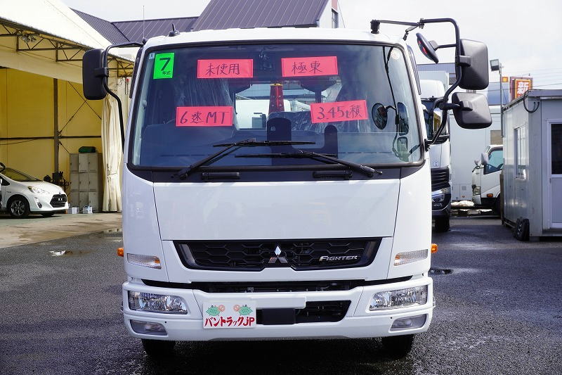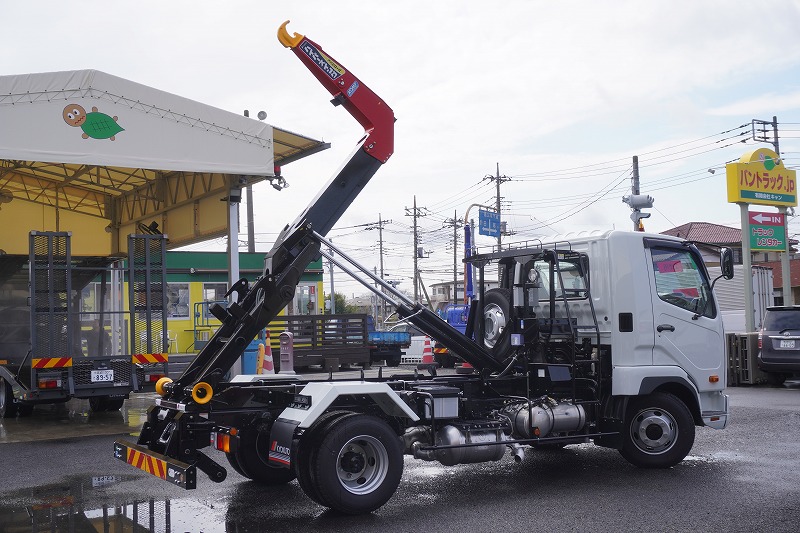 在庫No.K-0308 (未使用) ファイター 4トン 「ベッドレス」 フックロール 極東製 積載3450kg ツインシリンダー キャブバックステップ 網工具入れ ラジコン オートエアコン バックカメラ 坂道発進補助 衝突軽減ブレーキ 車線逸脱警報 6速MT! 車検「R9年9月まで!」 AK