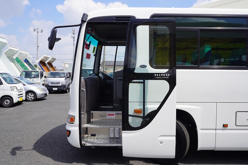 在庫No.C-0995 日野 メルファ 観光バス 41人乗り 1ドア スイング自動ドア モケットシート リクライニング機能 小型トランク プレヒーター ガイド席 総輪エアサス オートエアコン バックカメラ ルームラック ETC 6速MT!