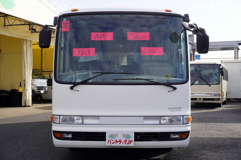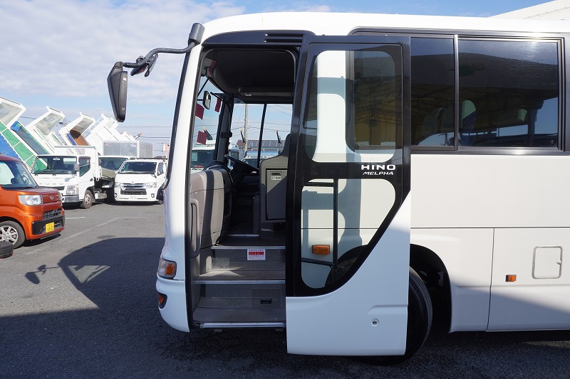 在庫No.K-0167 日野 メルファ 送迎バス 39人乗り 2ドア スイング自動ドア モケットシート プレヒーター 荷室スペース 小型トランク 総輪エアサス ガイド席 オートエアコン バックカメラ ルームラック アルミホイール AT車!
