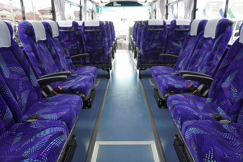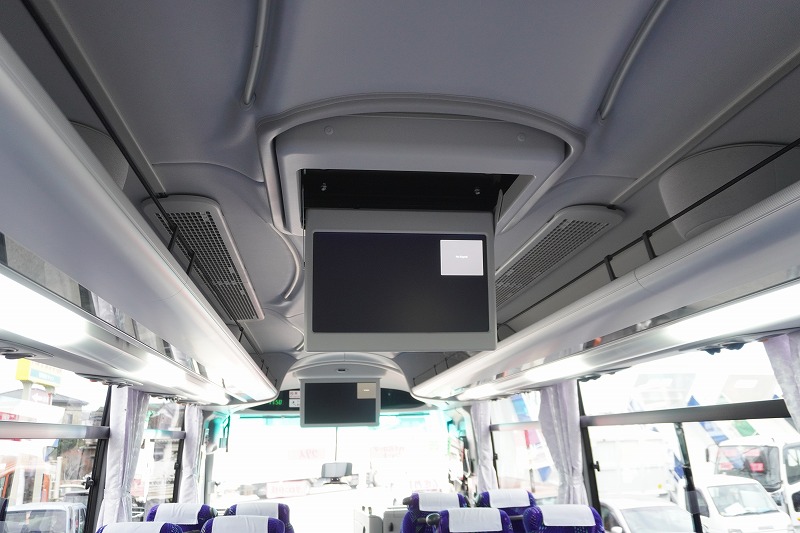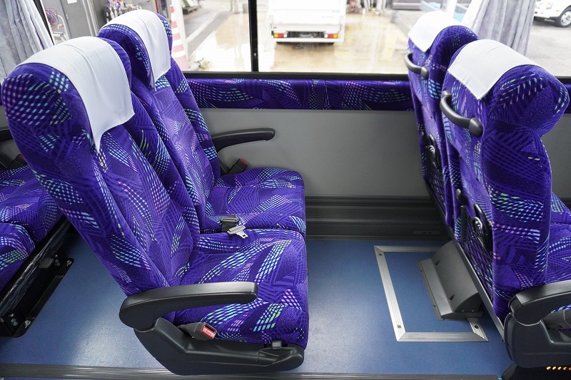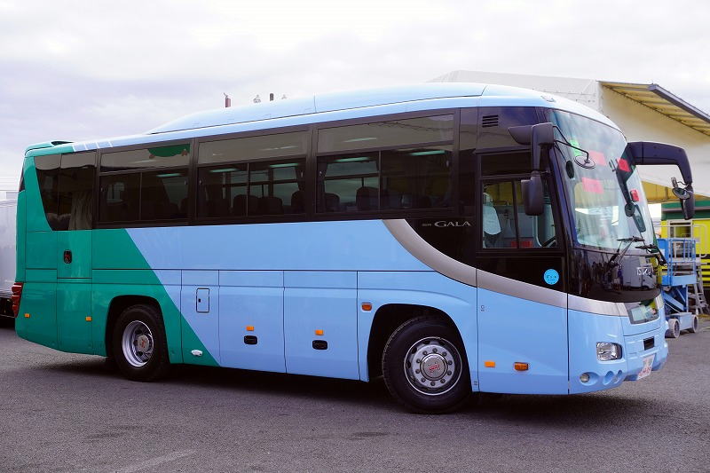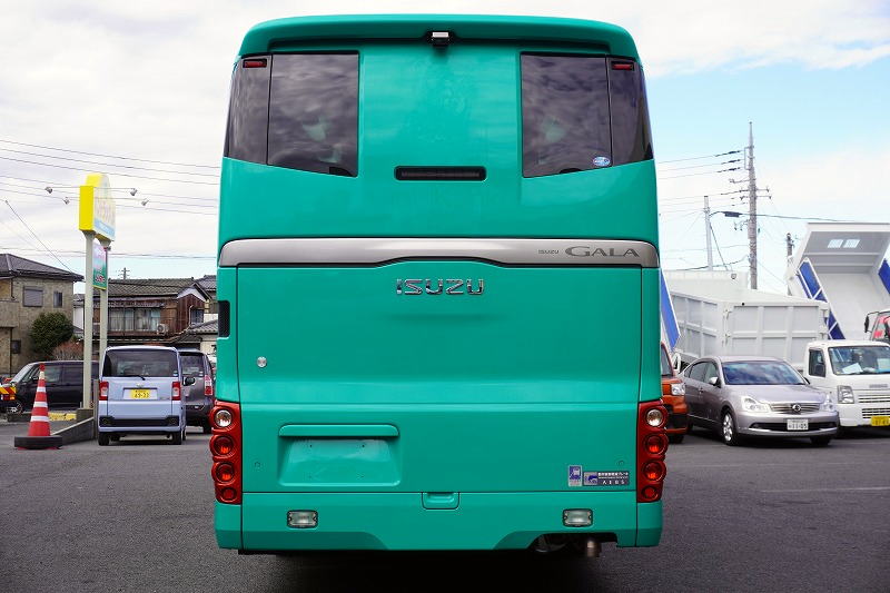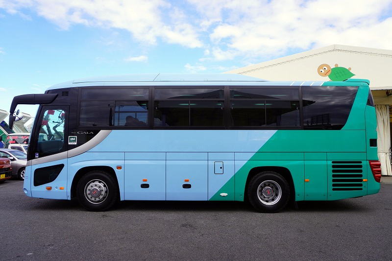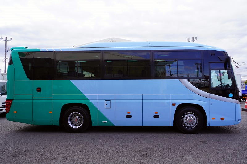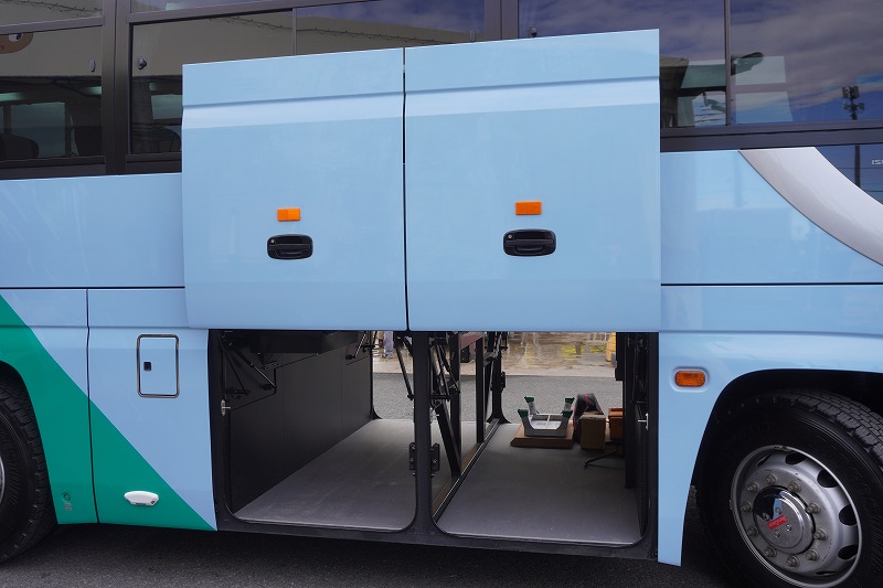 在庫No.K-0240 いすゞ ガーラ ハイデッカー9 「ショート」 観光バス 29人乗り 1ドア 自動ドア 総輪エアサス リターダー リア4脚サロンシート 貫通式トランク2列 格納式後席用モニター2箇所 冷蔵庫 湯沸器 ルームラック ガイド席 モケットシート バックカメラ ETC2.0 衝突軽減ブレーキ 車線逸脱警報 6速MT!