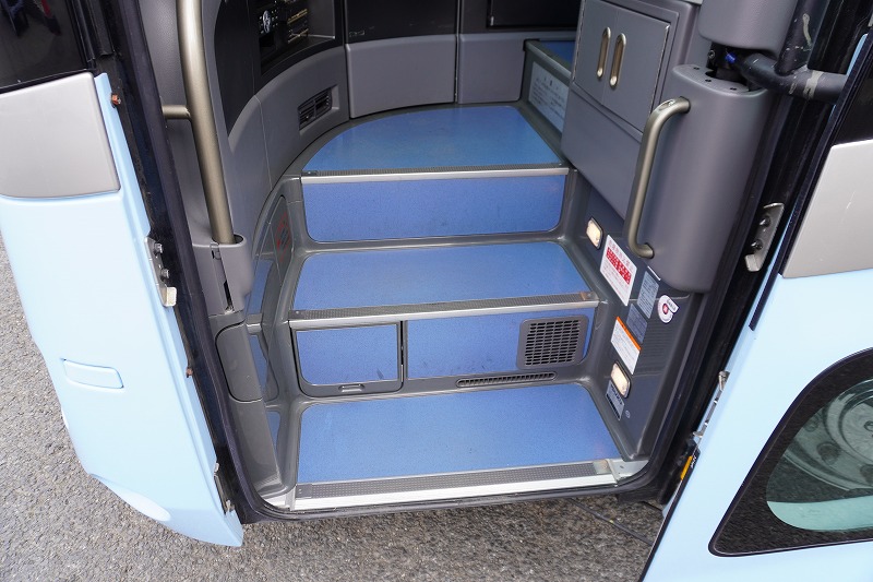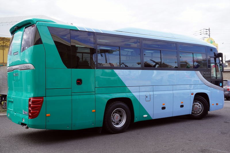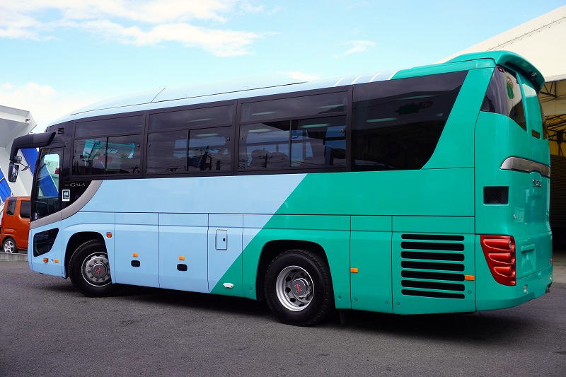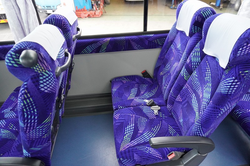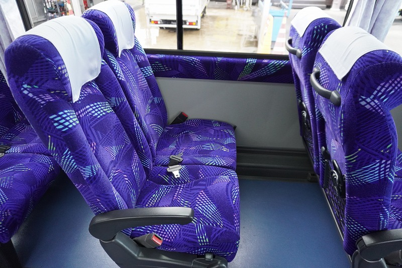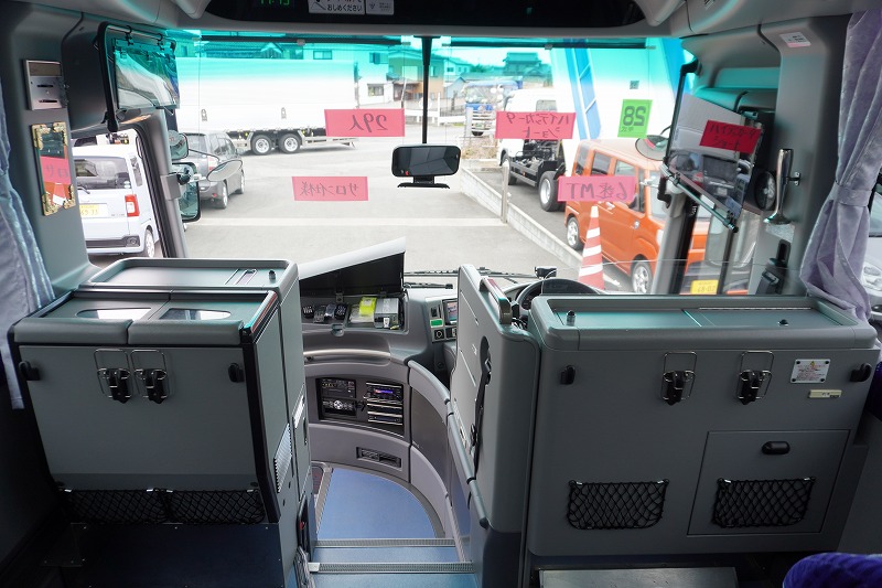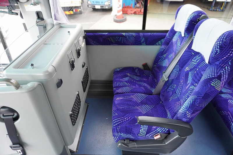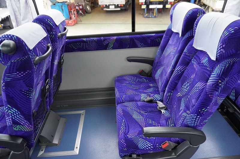 在庫No.K-0240 いすゞ ガーラ ハイデッカー9 「ショート」 観光バス 29人乗り 1ドア 自動ドア 総輪エアサス リターダー リア4脚サロンシート 貫通式トランク2列 格納式後席用モニター2箇所 冷蔵庫 湯沸器 ルームラック ガイド席 モケットシート バックカメラ ETC2.0 衝突軽減ブレーキ 車線逸脱警報 6速MT!