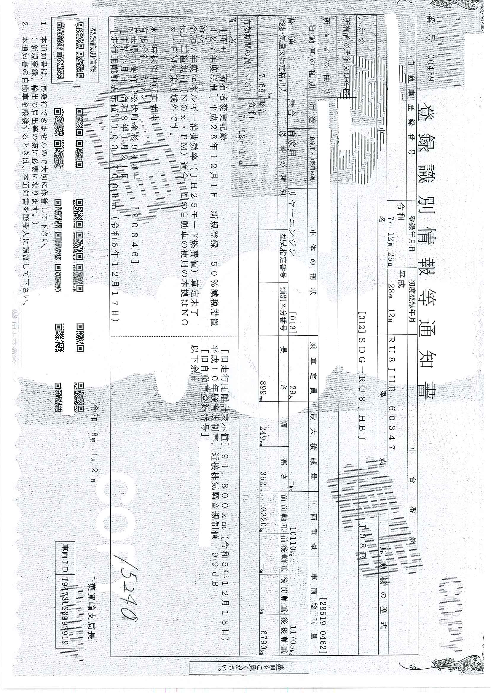 当店が把握できる車検証の表記より