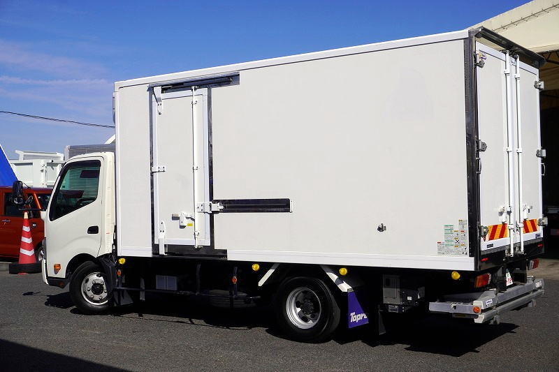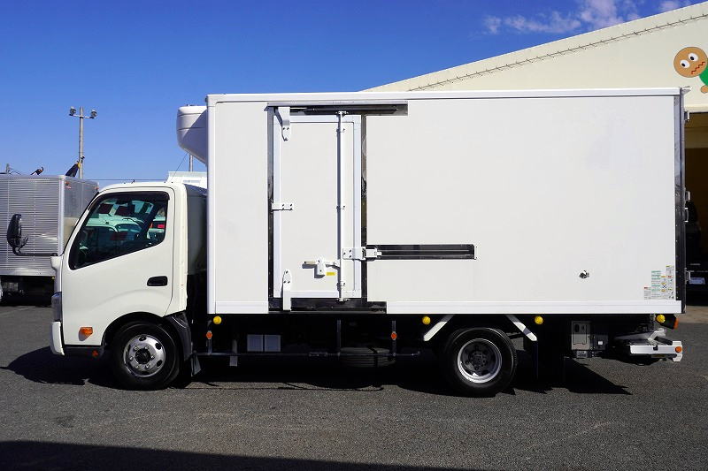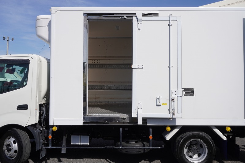 在庫No.K-0270 デュトロ 「ワイドロング」 冷蔵冷凍車 積載2950kg 格納パワーゲート サイドドア -30度設定 荷台シマ板張り ラッシング2段 左電格ミラー LEDヘッドライト フォグランプ バックカメラ ETC2.0 クリアランスソナー 衝突軽減ブレーキ 車線逸脱警報 東プレ製 AT車! 車検「R8年9月まで!」