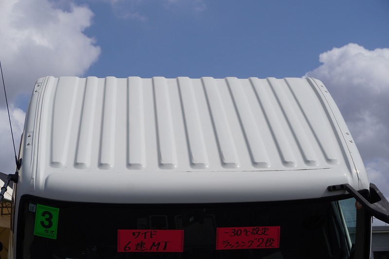 在庫No.K-0309 レンジャー 4トン 「ワイド ベッド付き」 冷蔵冷凍車 積載2300kg リアエアサス 6.2m長 格納パワーゲート 観音式サイドドア -30度設定 キーストン ラッシング2段 バックカメラ 菱重製 オートエアコン 低走行!240馬力!6速MT! 車検「R8年10月まで!」AK