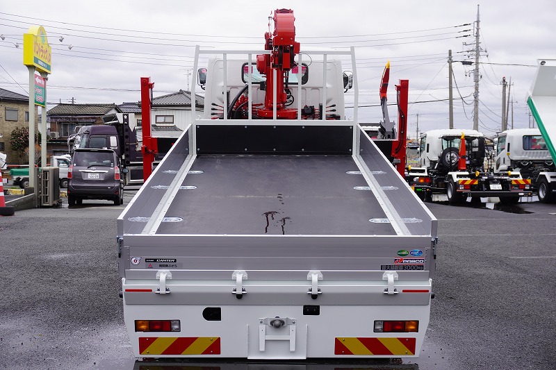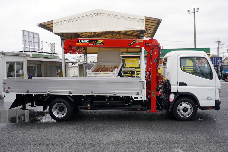 在庫No.C-0763 (未使用) キャンター 「ワイド超ロング」 4段セルフクレーン 積載3000kg 古河ユニック製 アルミブロック ラジコン フックイン 2.93t吊 アユミ板掛け 床フック バックカメラ 坂道発進補助 左電格ミラー スマートキー LEDヘッドライト&フォグランプ 衝突軽減ブレーキ 車線逸脱警報 5速MT! 車検「R8年12月まで!」