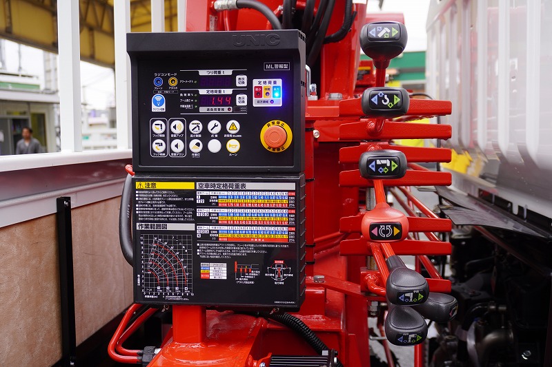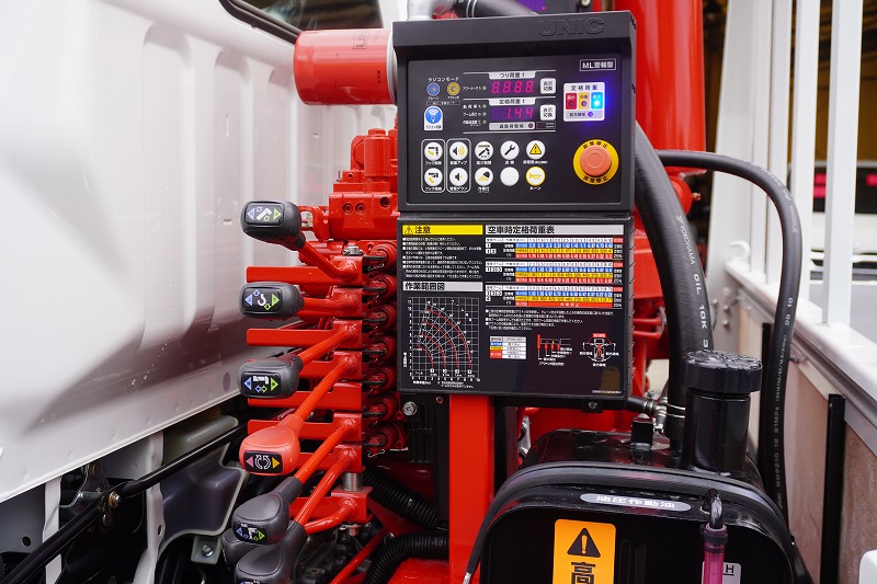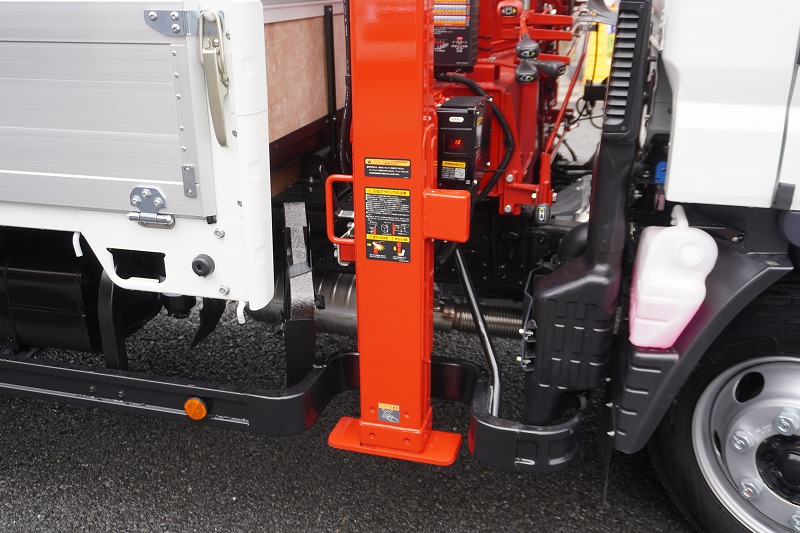 ワイド チョウロング 4段ブーム ハイアウトリガー 3トン積 アルミ平 リモコン フック格納 2.9トン吊 道板掛け 内フック 未使用 |