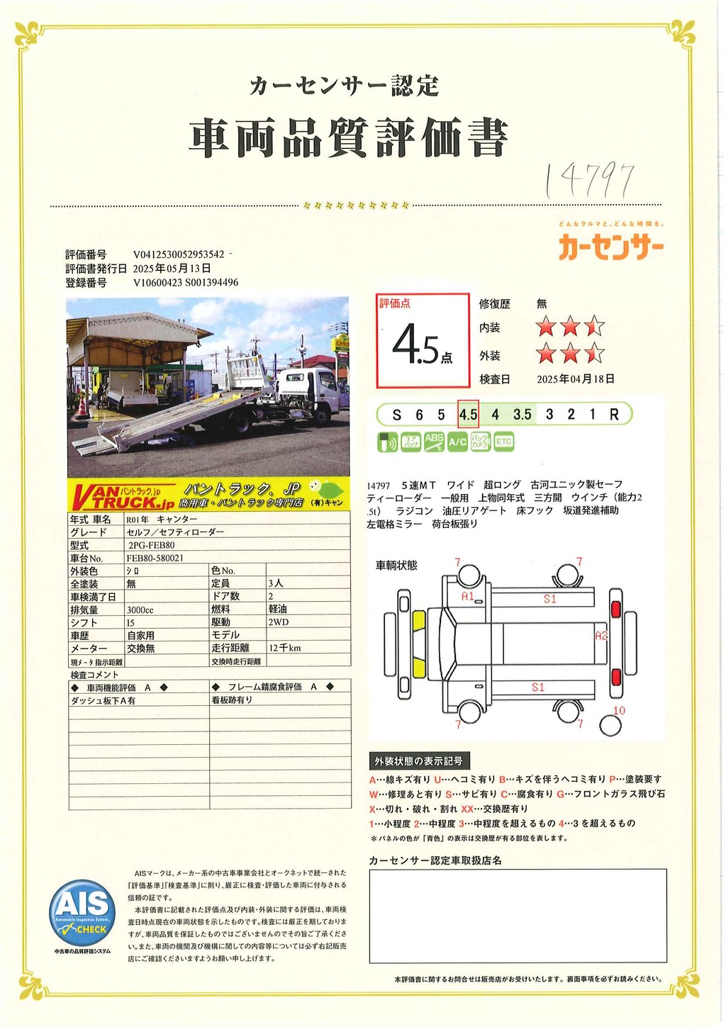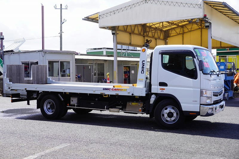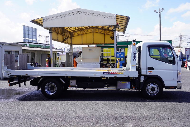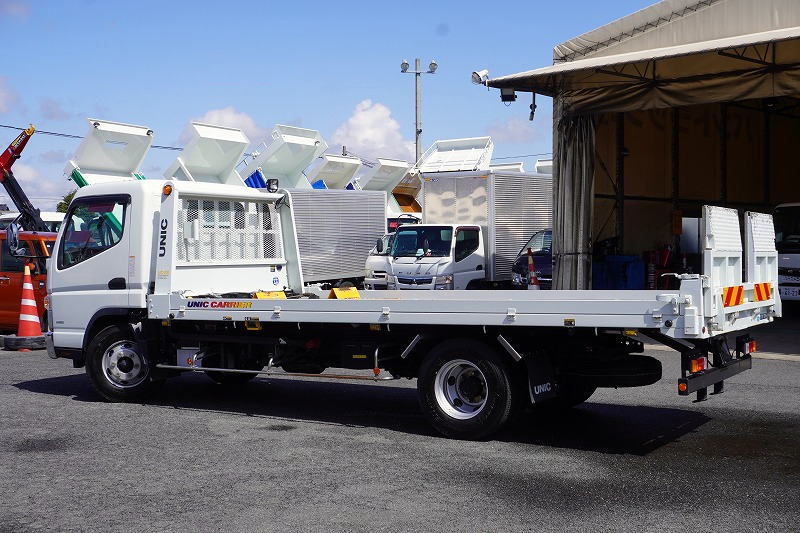 在庫No.C-0797 キャンター 「ワイド超ロング」 セーフティーローダー 一般用 古河ユニック製 積載3300kg ウインチ ラジコン 油圧リアゲート 三方開 荷台板張り 床フック バックカメラ ETC 左電格ミラー 坂道発進補助 フォグランプ ステンレス工具箱 5速MT!低走行!