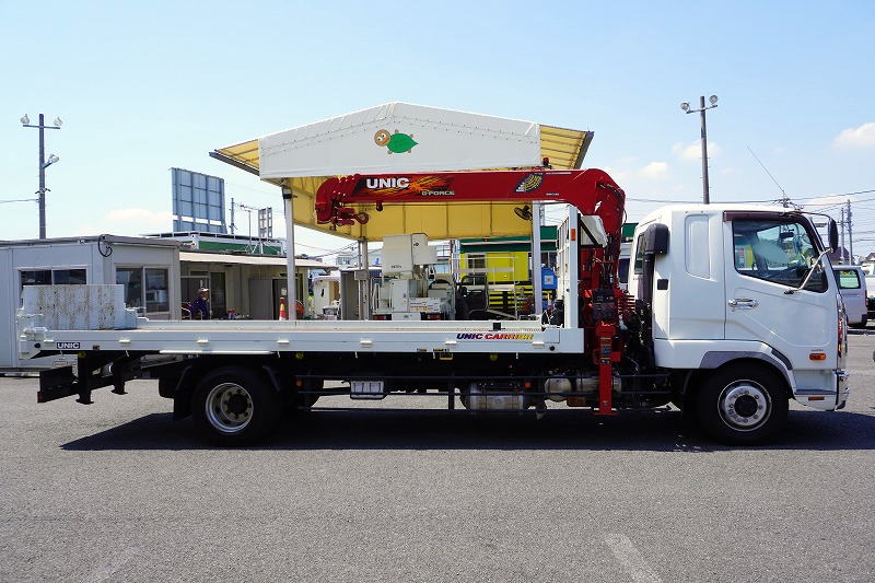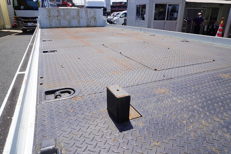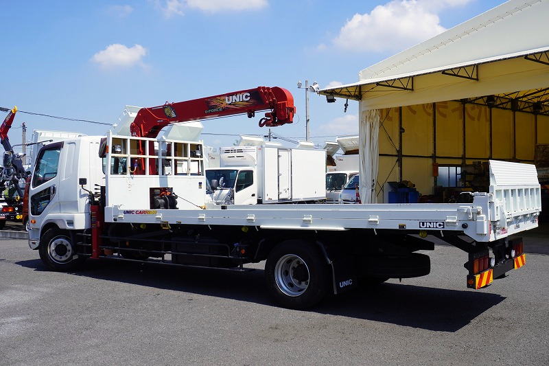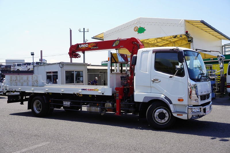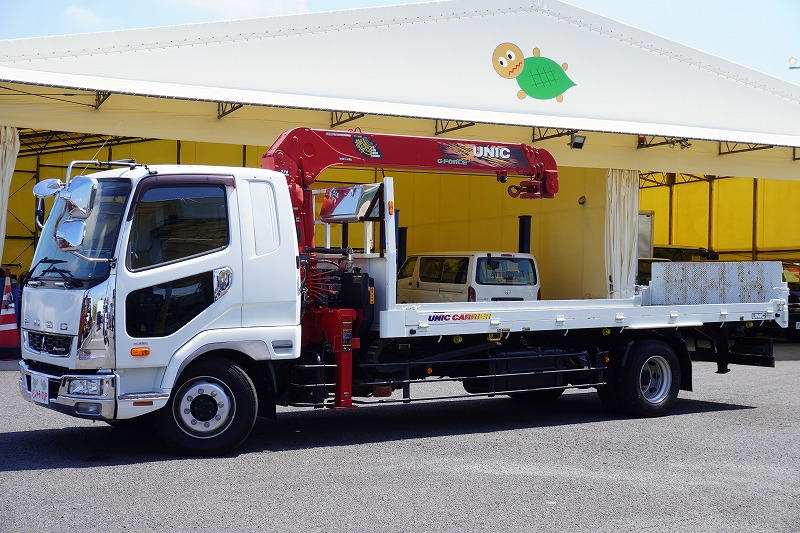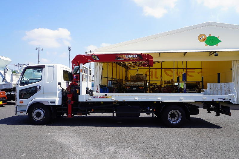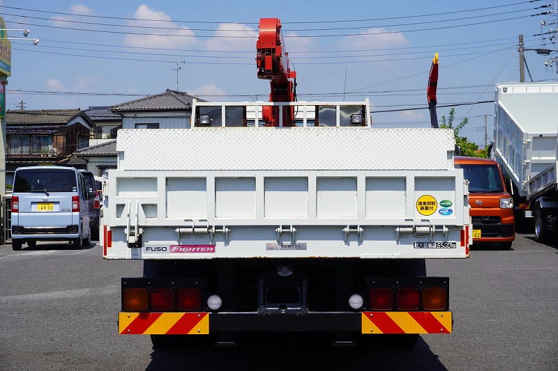 在庫No.C-0954 ファイター 増トン 「標準幅 ベッド付」 4段クレーン セーフティローダー ウインチ付き 積載6500kg 古河ユニック製 2.93t吊 ラジコン フックイン 差し違いアウトリガー 5.8m長 リア油圧ゲート 荷台シマ板張り スタンション穴 床フック ETC メッキパーツ 6速MT!車検「R7年10月まで!」