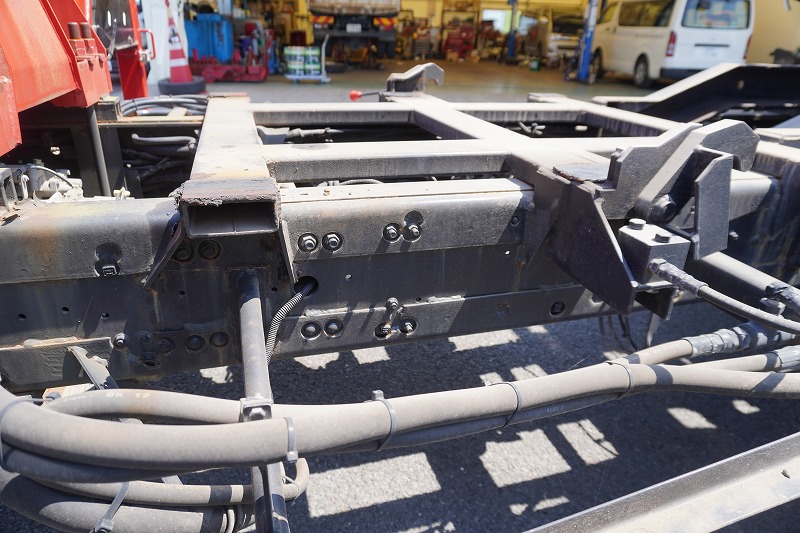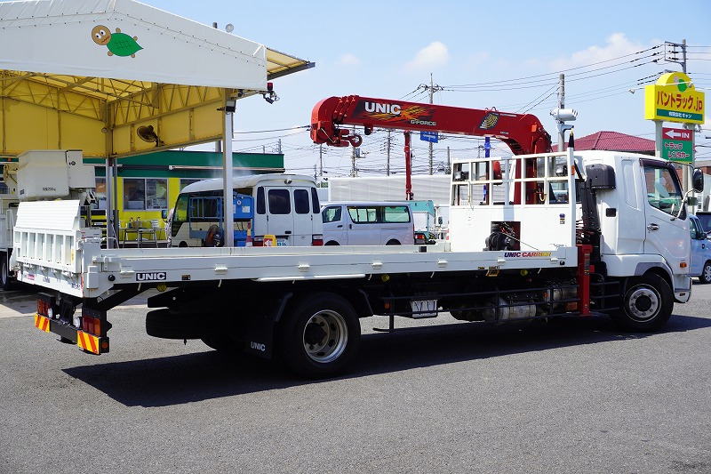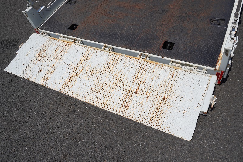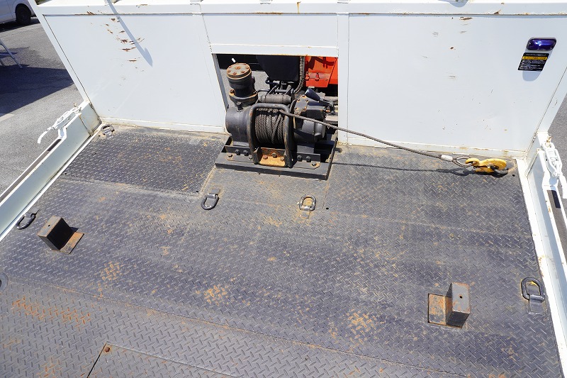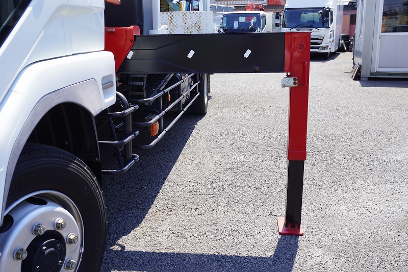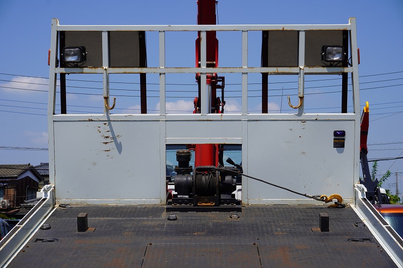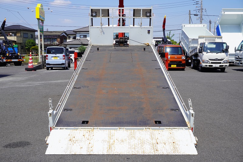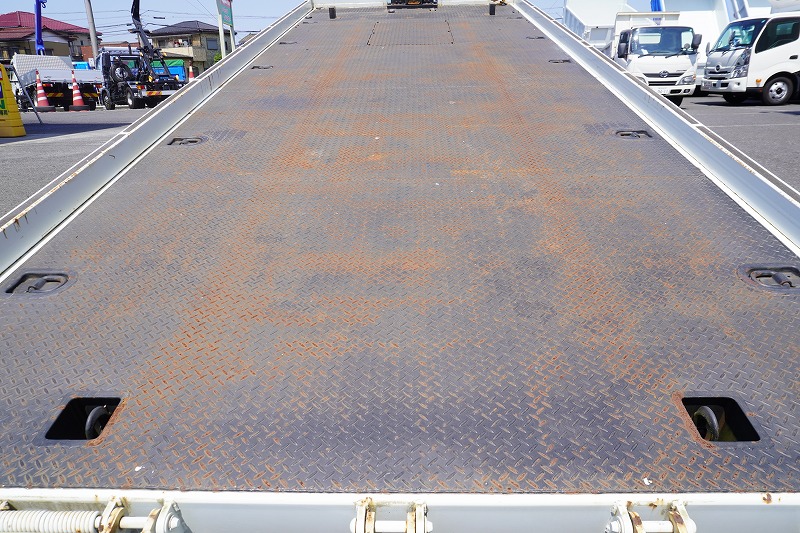 増t 標準巾 寝台付 4段ユニック セーフティローダー ウインチ付き リモコン 6.5トン積 5800mm長 差違い 自動歩み スタンションホール 内フック 重機運搬 床縞板 |