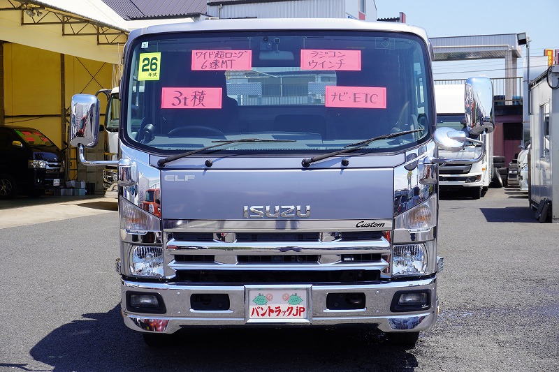在庫No.C-0963 エルフ 「カスタム ワイド超ロング」 セーフティーローダー 車載専用 古河ユニック製 積載3000kg ラジコン ウインチ 床フック 一方開 両側電格ミラー 坂道発進補助 HIDヘッドライト フォグランプ 社外ナビ フルセグTV ETC ステンレス工具箱 メッキパーツ 6速MT!美車! 車検「R8年3月まで!」