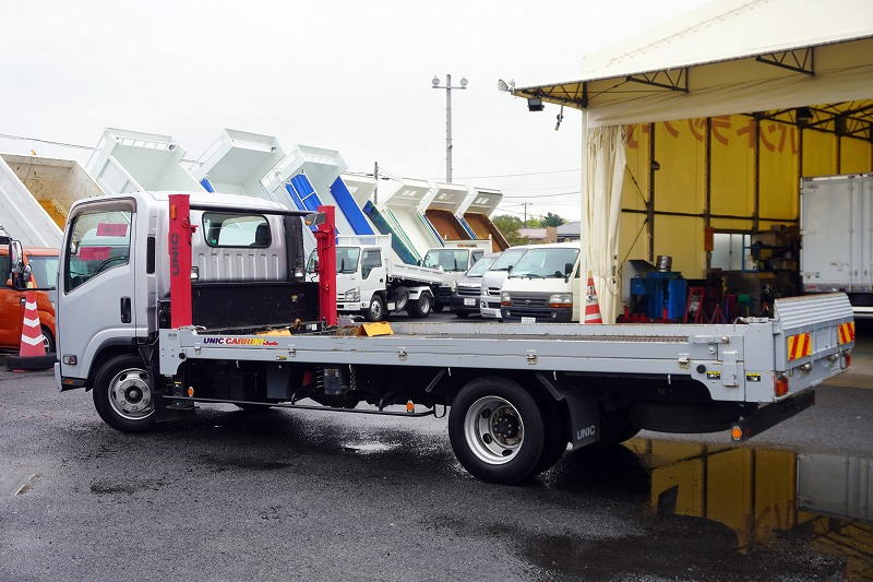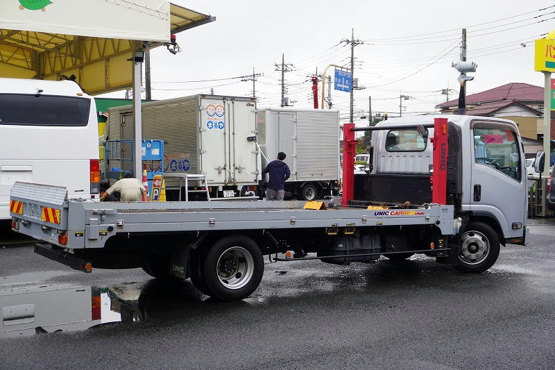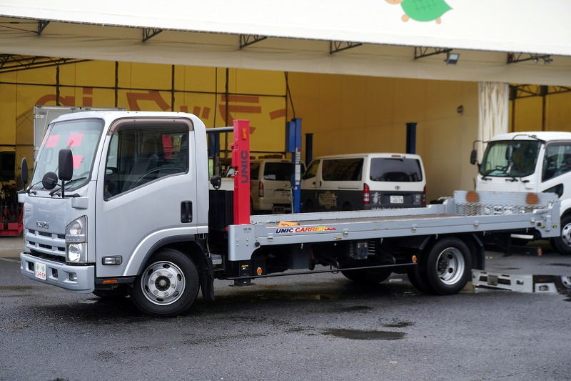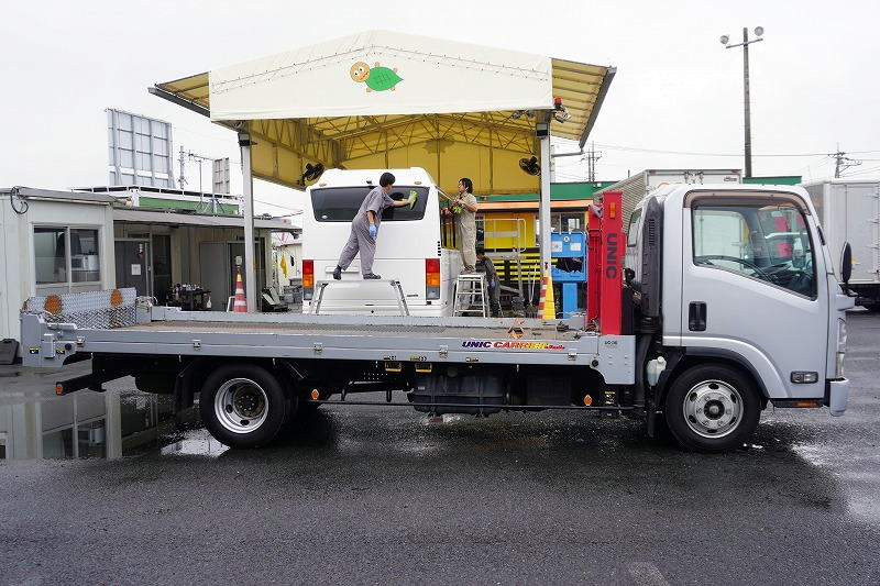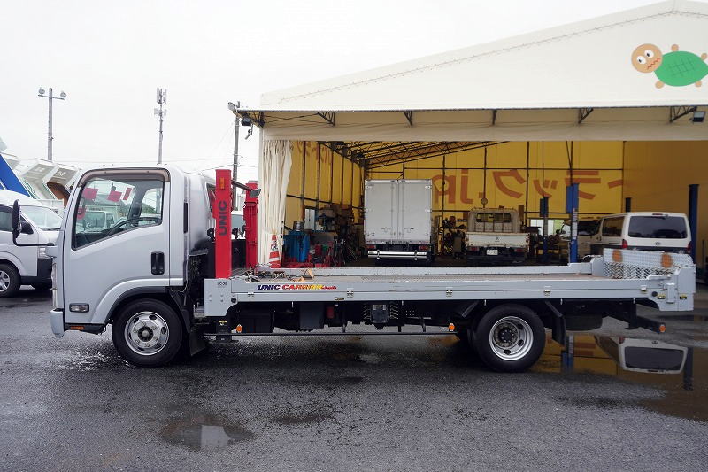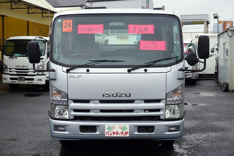 在庫No.K-0073 エルフ 「ワイド超ロング」 セルフローダー 一般用 古河ユニック製 積載3300kg ハイジャッキ ラジコン ウインチ 電動スライド式ステップ 三方開 床フック6対 左電格ミラー 坂道発進補助 フォグランプ 6速MT!