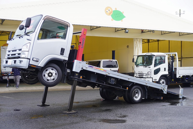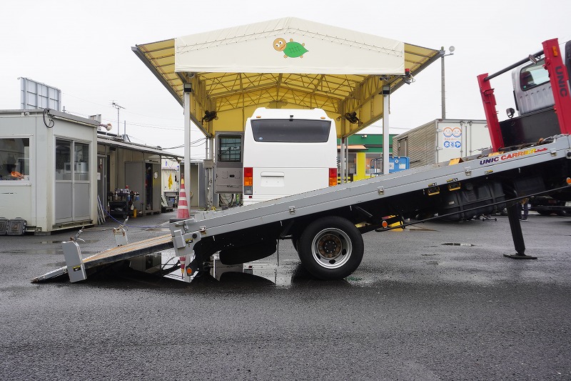 ワイド チョウロング 車両運搬車 一般用 3.3トン積 ハイアウトリガー リモコン ウインチ スライドステップ 3方開 内フック |