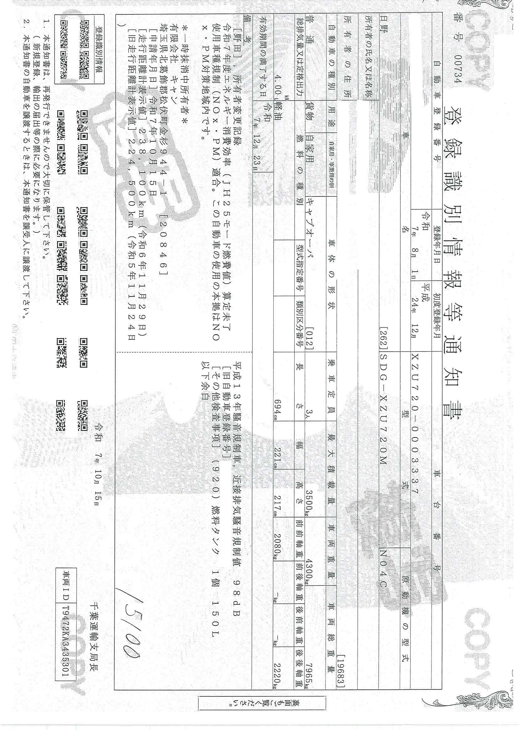 当店が把握できる車検証の表記より