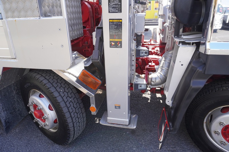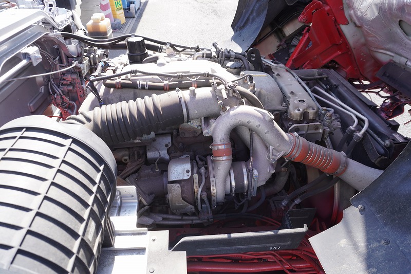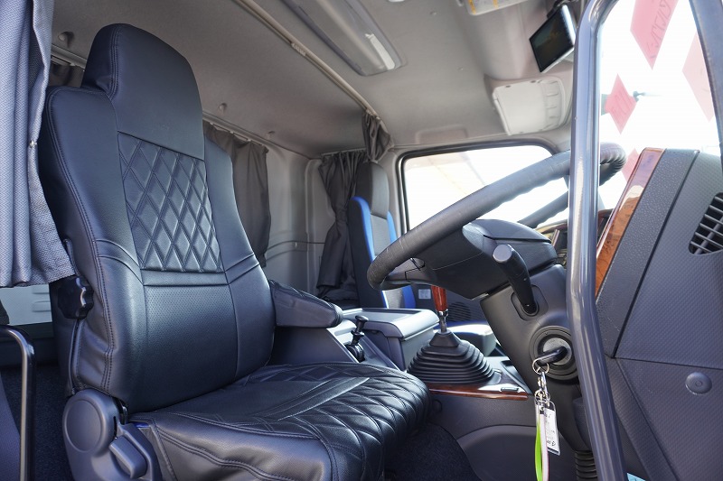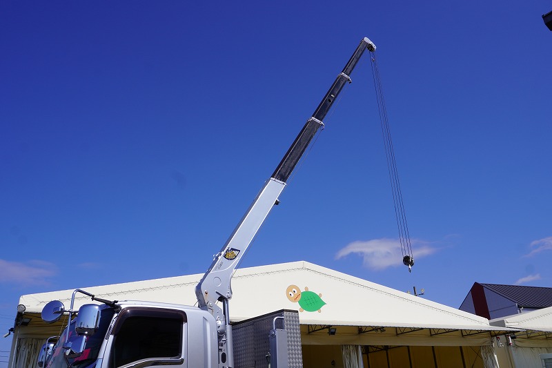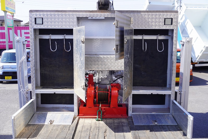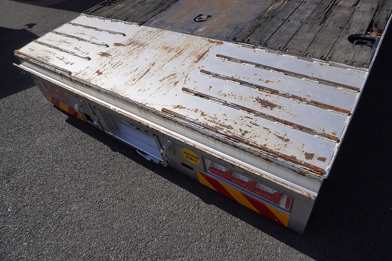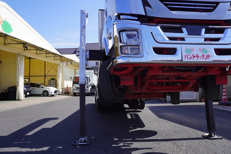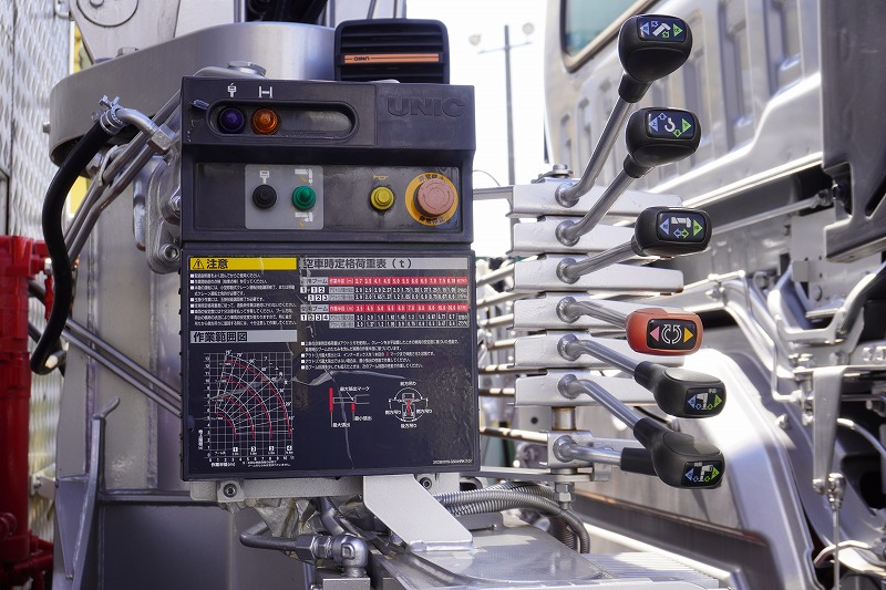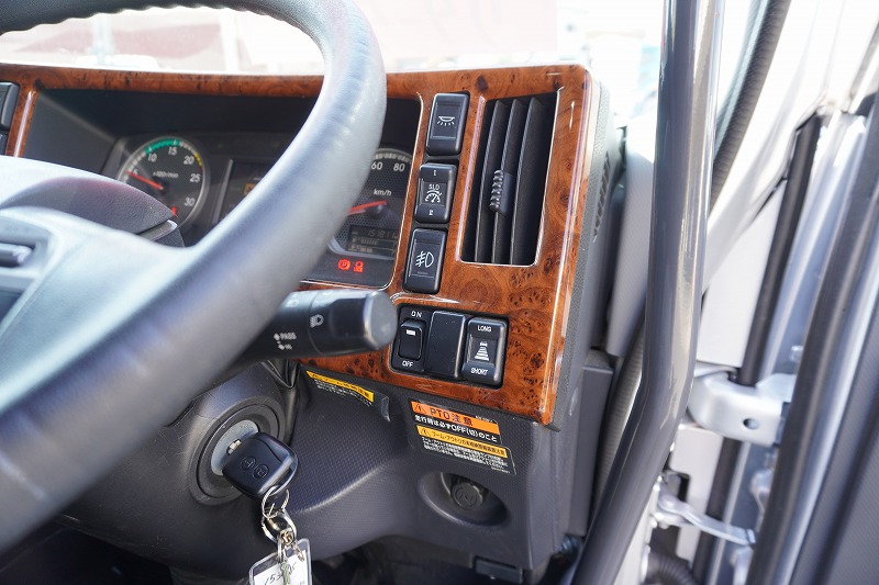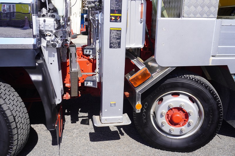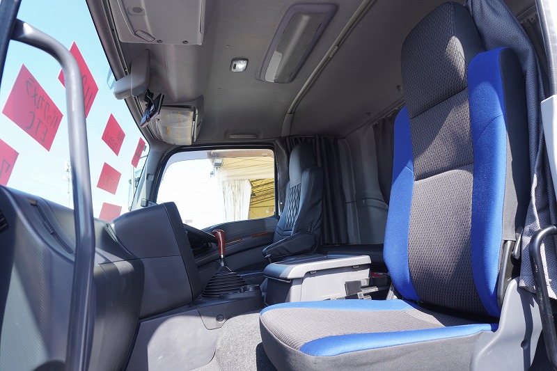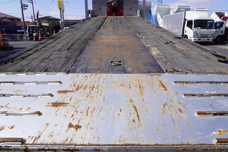 大型 四軸 寝台付 標準ルーフ 4段ユニック セルフクレーン 11.2トン積 ラジコン ウインチ 造りボディー 重機運搬 リターダー |