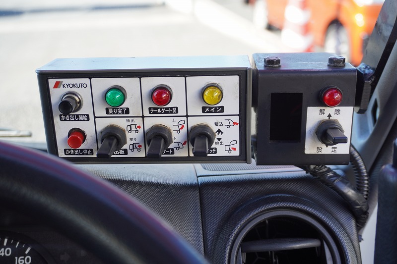 標準巾 塵芥車 圧縮板式 2トン積 4.2㎥ 単独動作 汚水タンク 作業中表示灯 |