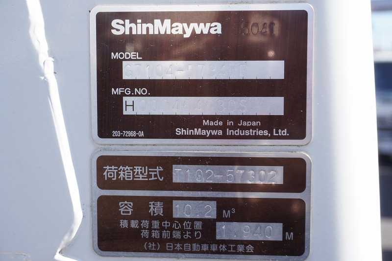 4t 寝台無し 塵芥車 圧縮板式 1.5トン積 10.2㎥ 連続スイッチ 防臭ドア 汚水タンク カゴ ダンボール仕様 |