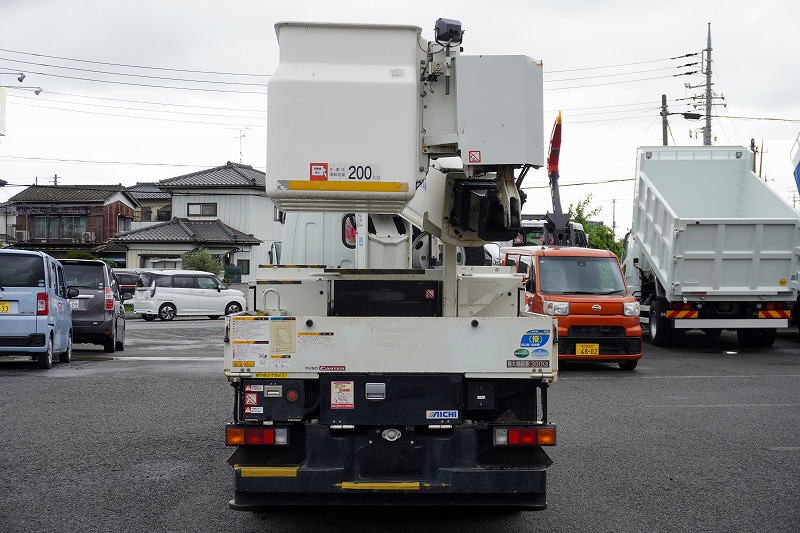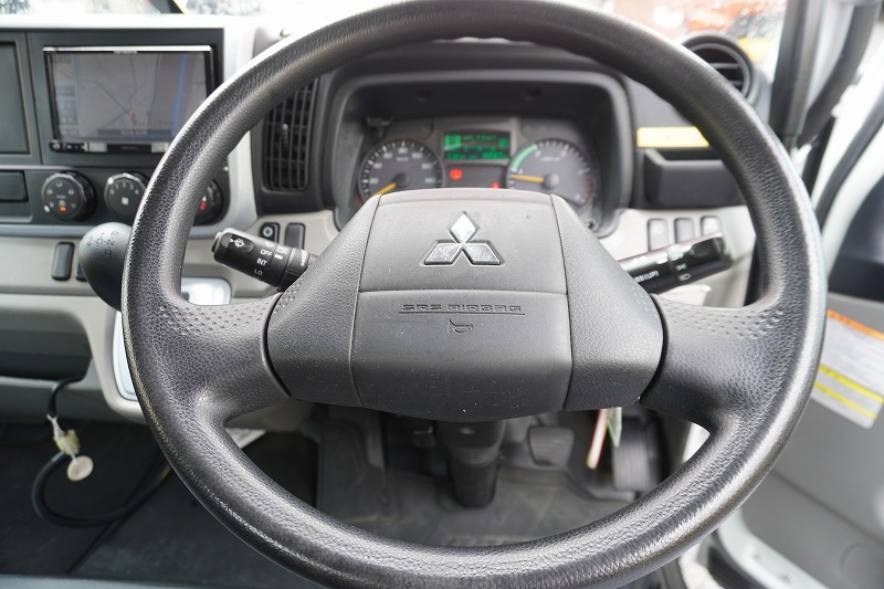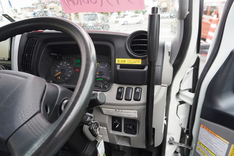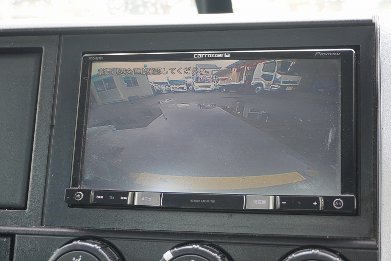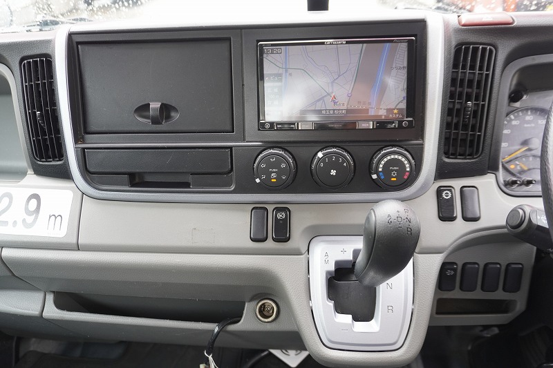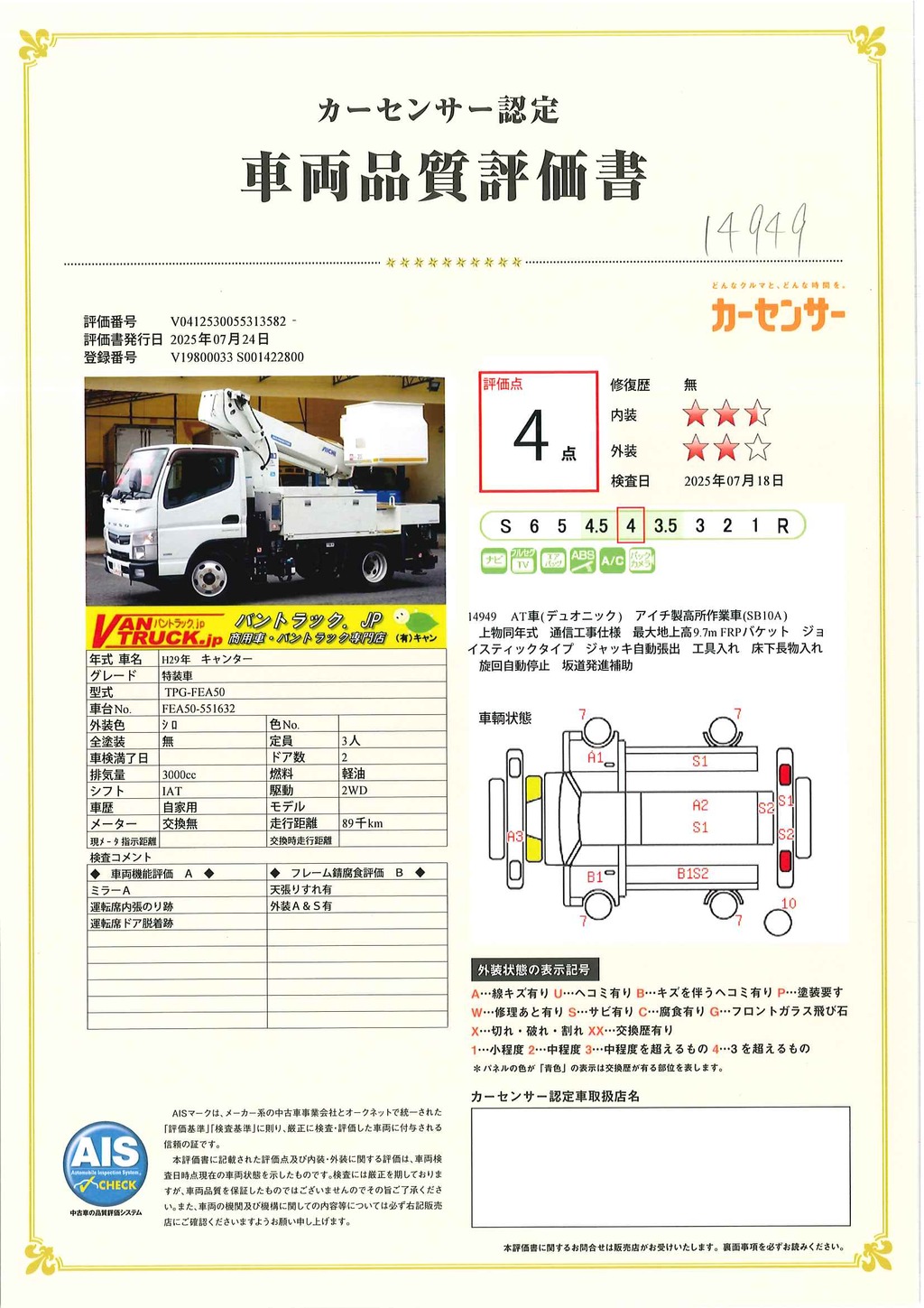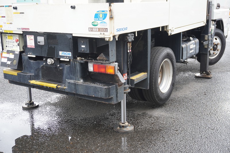 在庫No.C-0949 キャンター 高所作業車 アイチ製(SB10A) 最大地上高9.7m FRPバケット バケット積載荷重200kg 積載300kg 工具入れ ジョイスティックタイプ アワーメーター:2135h 左電格ミラー 社外ナビ バックカメラ フォグランプ 通信工事仕様!AT車!
