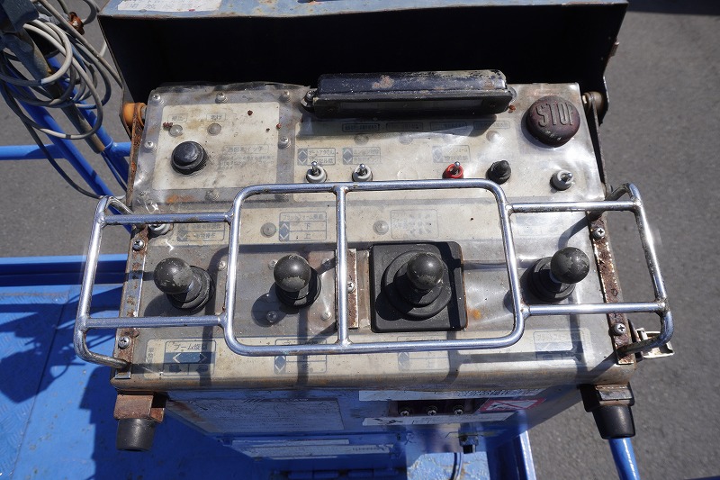 高所作業車 作業高9.9m 鉄製バケット アワーメーターh テーブルデッキ ブーム自動格納 ローラーアウトリガー |