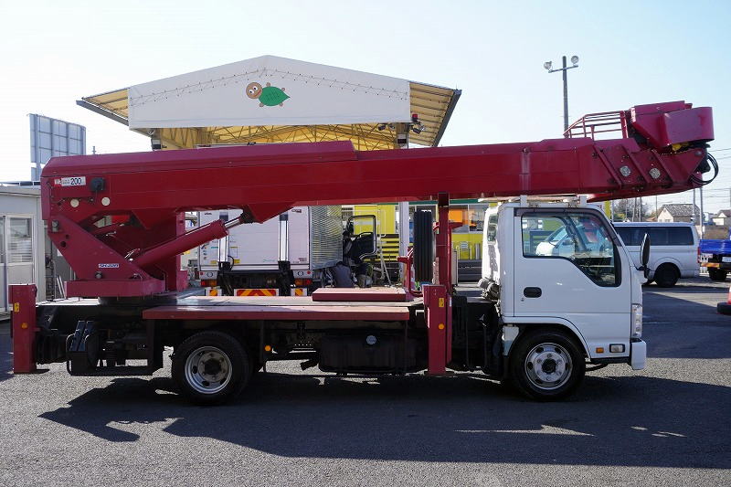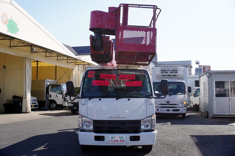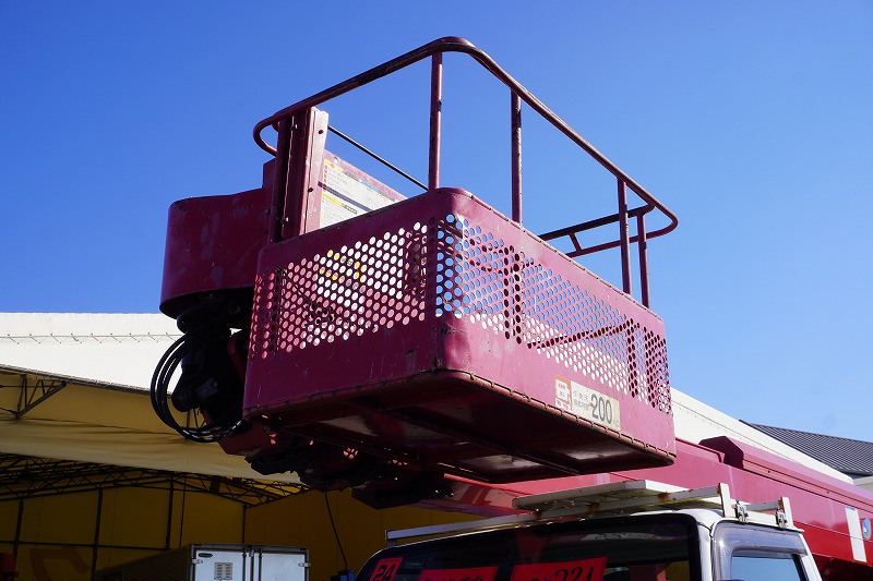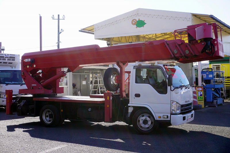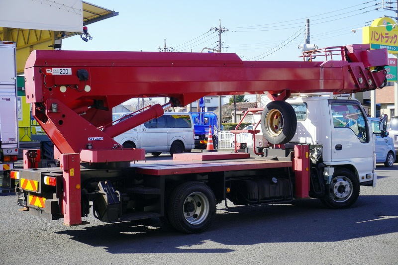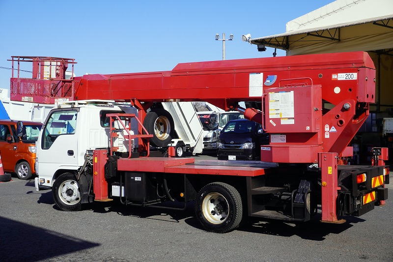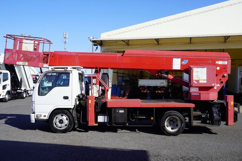 在庫No.K-0254 エルフ 高所作業車 アイチ製(SK22A) 最大地上高22.1m 鉄製バケット バケット積載荷重200kg アワーメーター:3485h ジョイスティックタイプ ブーム自動格納 ETC 坂道発進補助 左電格ミラー 6速MT!