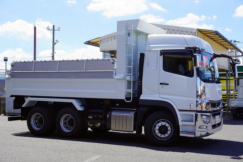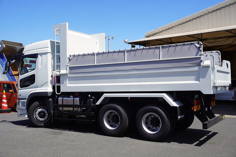 在庫No.U-0650 (未使用) スーパーグレート 大型 「ハイルーフ」 3軸 2デフ 土砂ダンプ 5.1m長 積載8900kg 新明和製 角底 電動コボレーン 鳥居シートデッキ&ラダー ETC2.0 燃料タンク300L ミラーヒーター 7速MT!総重量20トン未満! 車検「R6年4月まで!」