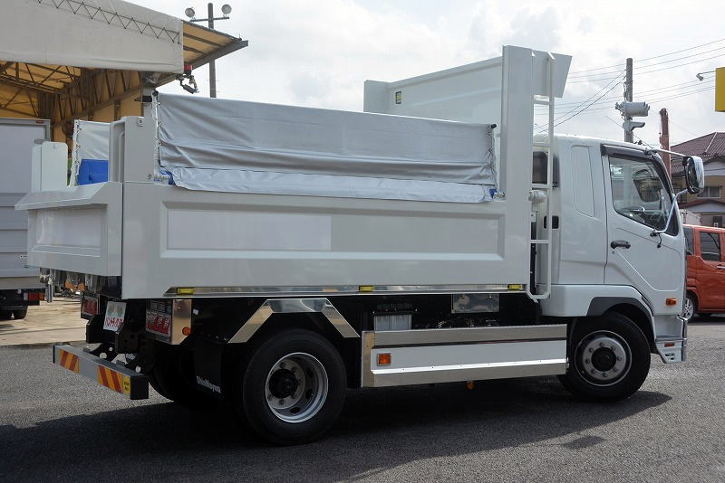 在庫No.U-0061 (未使用) ファイター 増トン 「ベッド付き」 土砂ダンプ 新明和製 一方開 積載7100kg 電動コボレーン ダンプピン 造りボディー 砂切り付き 台枠&造りサイドバンパーステンレス張り 社外テール ミラーヒーター 坂道発進補助 ETC キーレス HIDヘッドライト 運転席エアサスシート メッキパーツ多数!高機能パッケージ!6速MT!