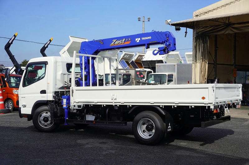 在庫No.C-0522 (未使用) キャンター 「ワイドロング」 4段クレーン 積載3000kg タダノ製 ラジコン フックイン 2.63t吊 セイコーラック 坂道発進補助 LEDヘッドライト&フォグランプ 左電格ミラー 衝突軽減ブレーキ 車線逸脱警報 5速MT!車検「R7年4月まで!」