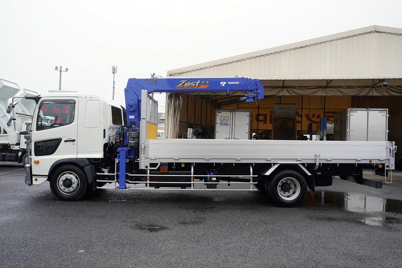 在庫No.C-0546 レンジャー 増トン 「標準幅 ベッド付き」 4段クレーン 積載7700kg タダノ製 5.5m長 ラジコン フックイン 2.93t吊 差し違いアウトリガー 角足 アルミブロック 三方開 セイコーラック 床フック6対 メッキパーツ 6速MT!高年式!低走行!!