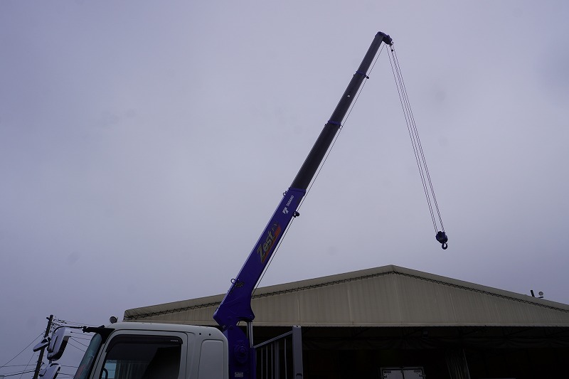 増t 標準巾 寝台付 4段ブーム 7.7トン積 5500mm長 リモコン フック格納 2.9トン吊 差違い 角足 アルミ平 3方開 内フック メッキ |