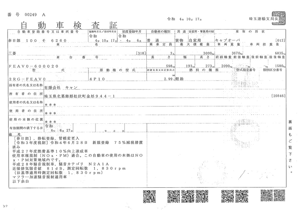 | 車検証上長さ |