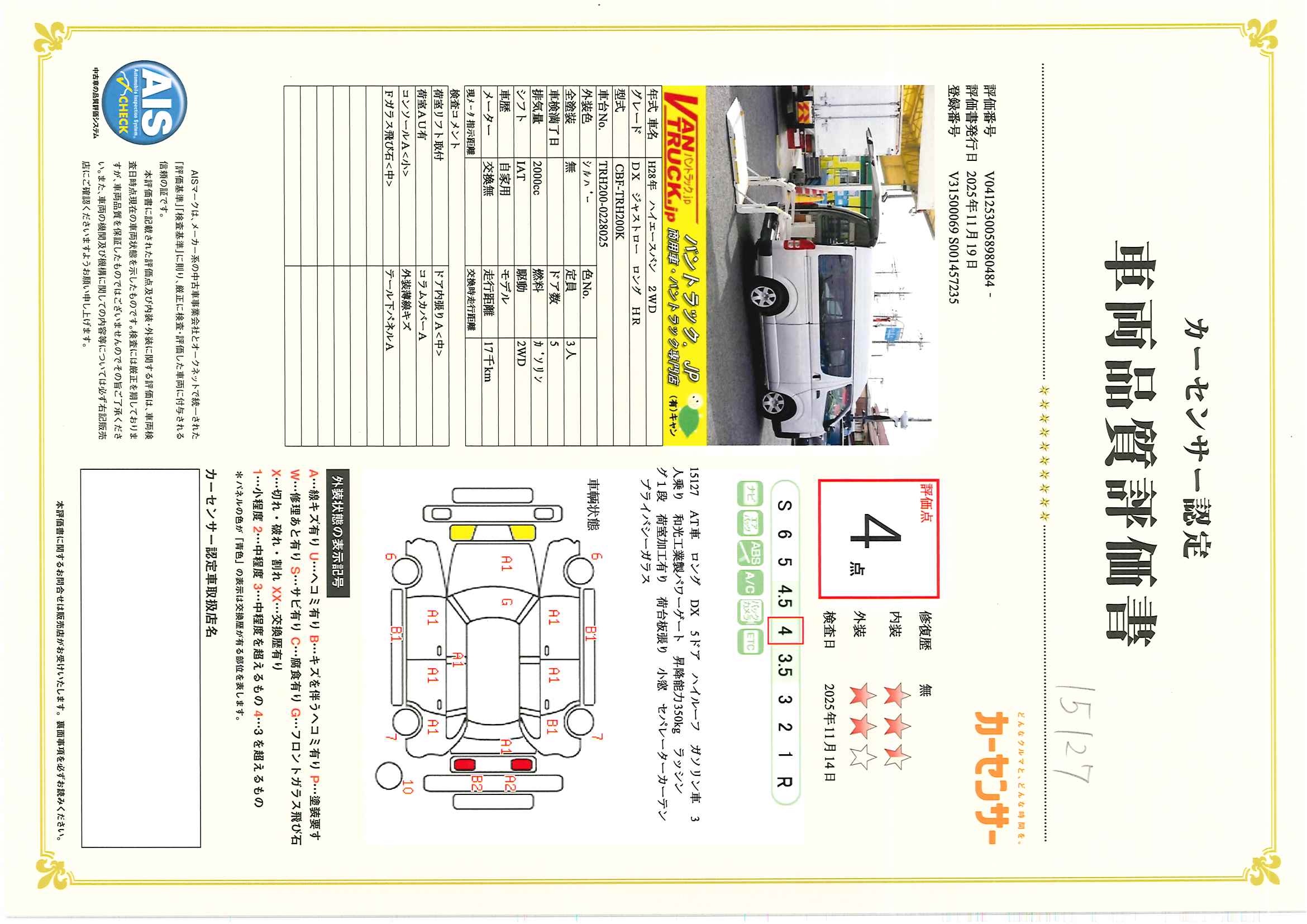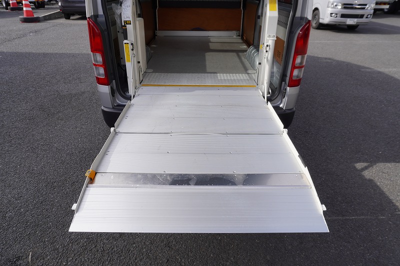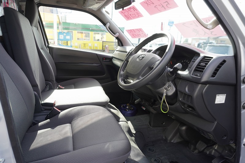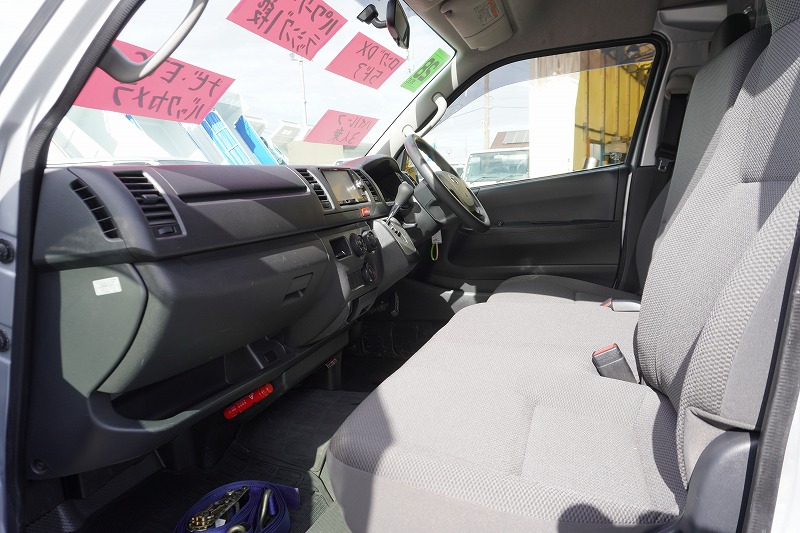 在庫No.K-0127 ハイエース ロング DX 5ドア 「ハイルーフ」 ガソリン車 3人乗り 和光工業製パワーゲート ラッシング1段 荷室加工有り 荷台板張り バックカメラ ETC 社外ナビ セパレーターカーテン 低走行!AT車!