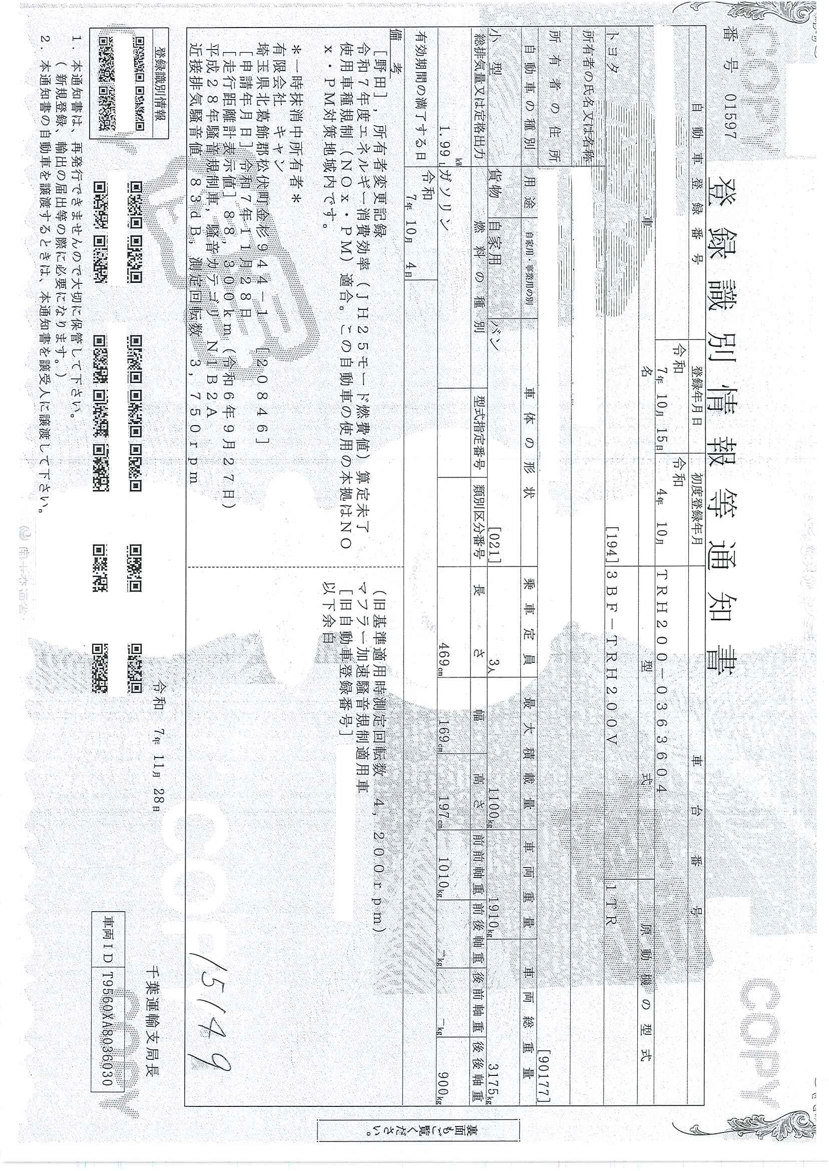 当店が把握できる車検証の表記より