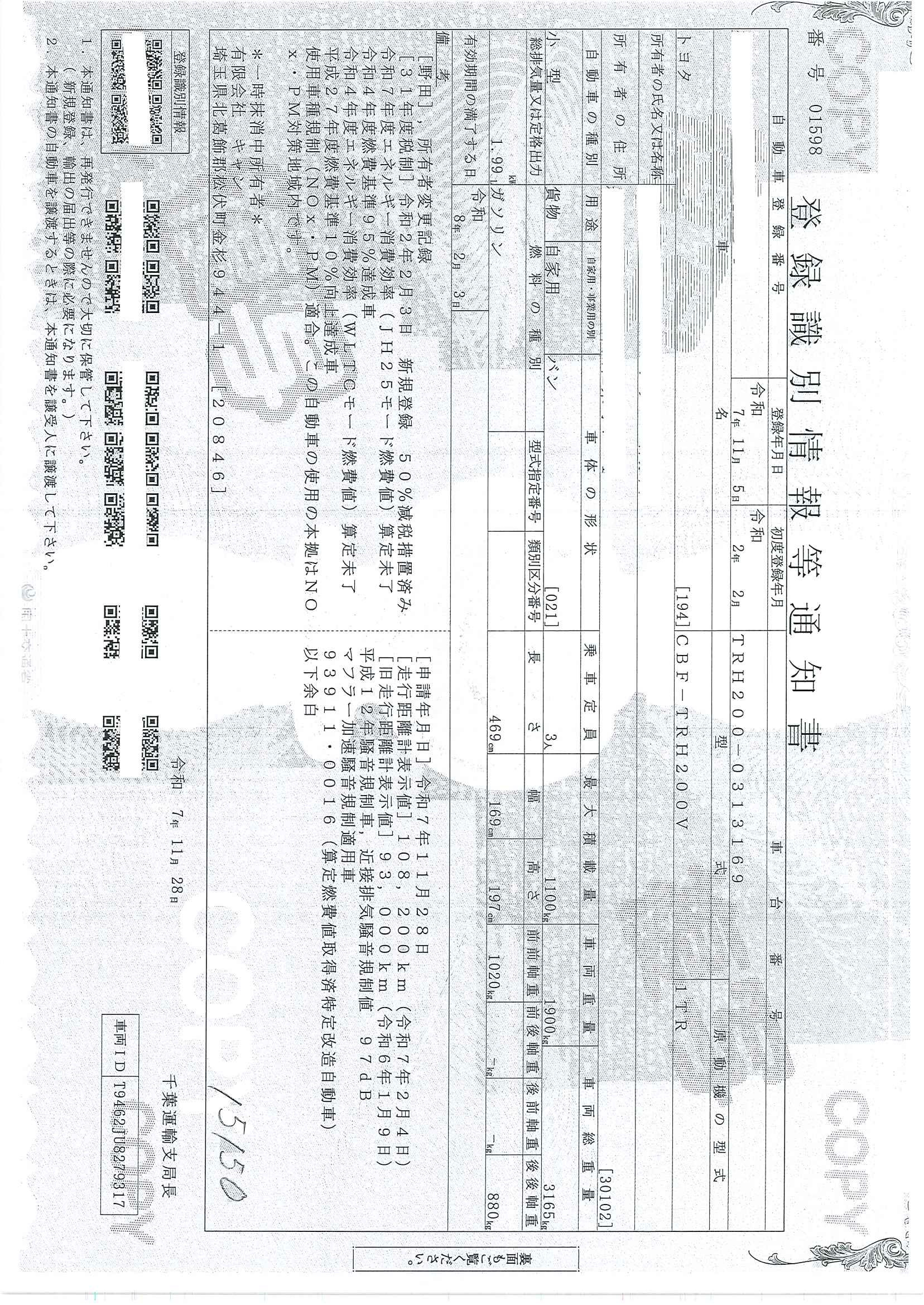 | 1TR | 1990cc | 0ps | 無 | NOx・PM新規規制適合車 |