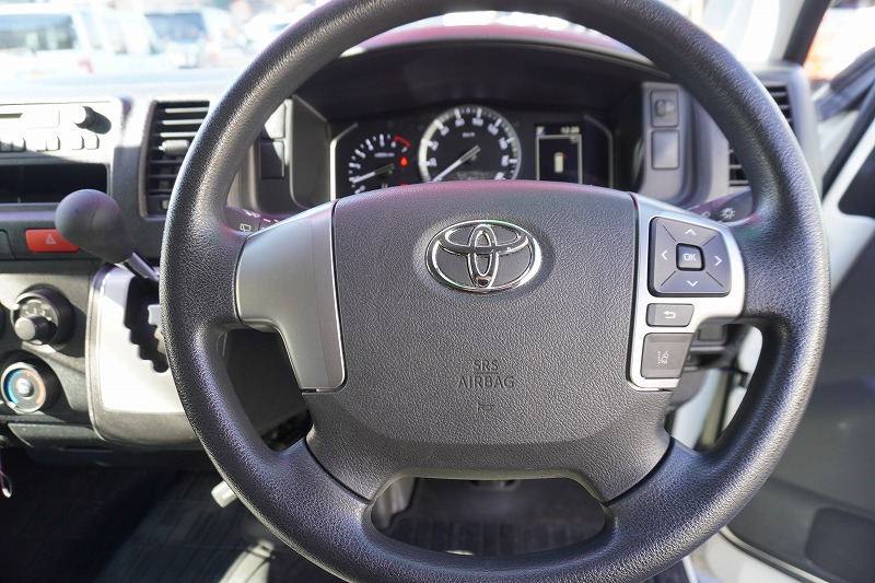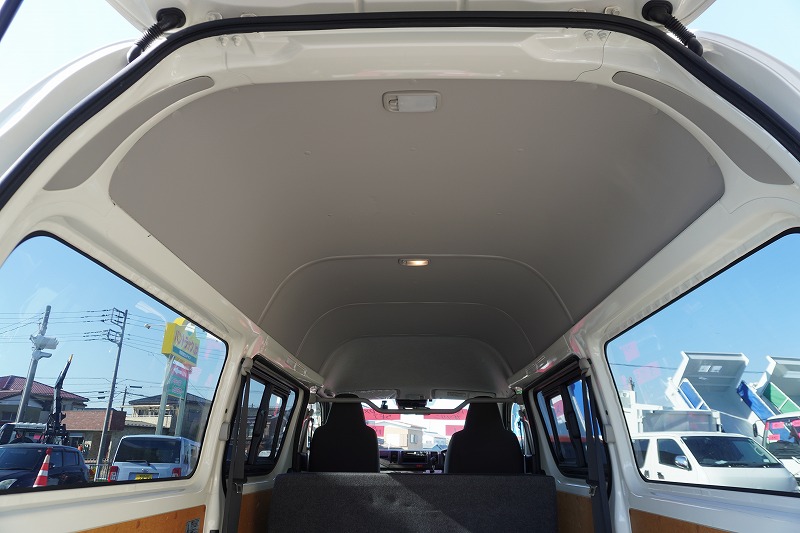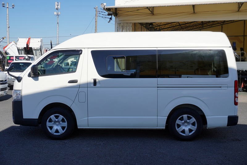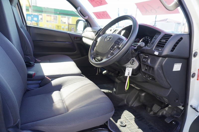 在庫No.K-0233 ハイエース ロング DX 5ドア 「ハイルーフ」 ガソリン車 3~6人乗り トヨタ車体製パワーゲート ETC 電動格納ミラー キーレス 衝突軽減ブレーキ 車線逸脱警報 ワンオーナー!AT車!
