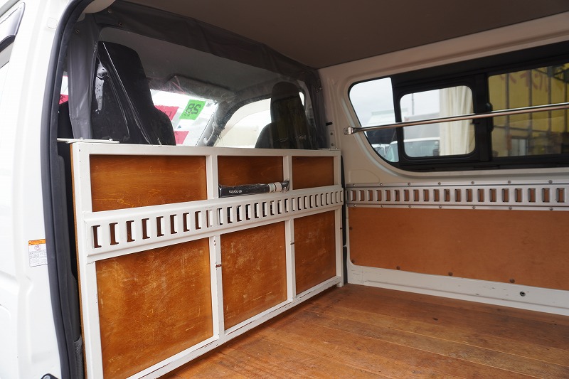 ロング DX 4ドア ガソリン 3名 パワーリフト 荷室加工有 床板張り ラッシングレール1段 小窓 |