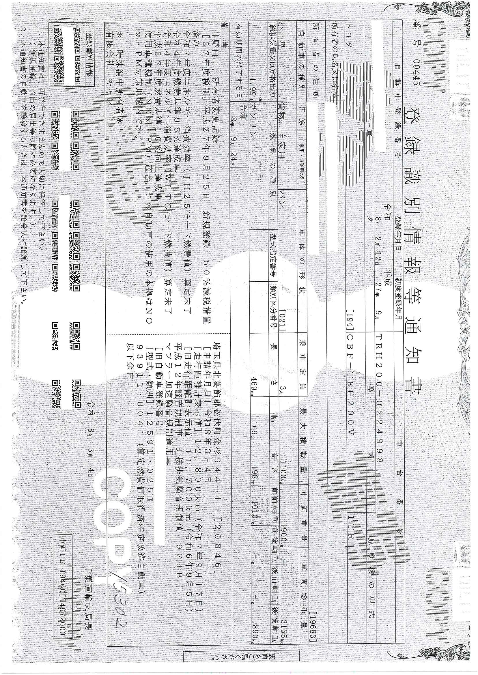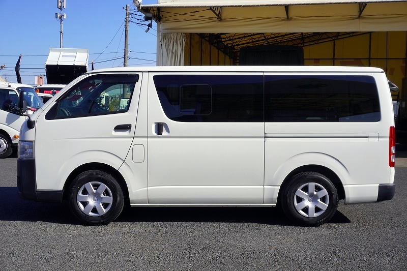 在庫No.K-0302 ハイエース ロング DX 4ドア ガソリン車 3人乗り トヨタ車体製パワーゲート 荷室加工有り 荷台板張り ラッシング1段 小窓 社外ナビ キーレス 低走行!AT車!