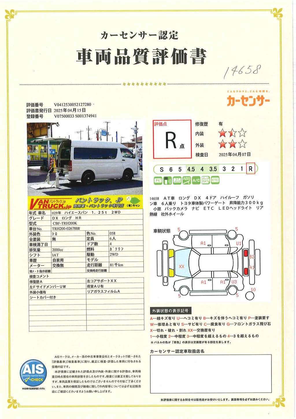 在庫No.C-0658 ハイエース ロング DX 4ドア 「ハイルーフ」 ガソリン車 3~6人乗り トヨタ車体製パワーゲート バックカメラ ナビ ETC LEDヘッドライト キーレス AT車!