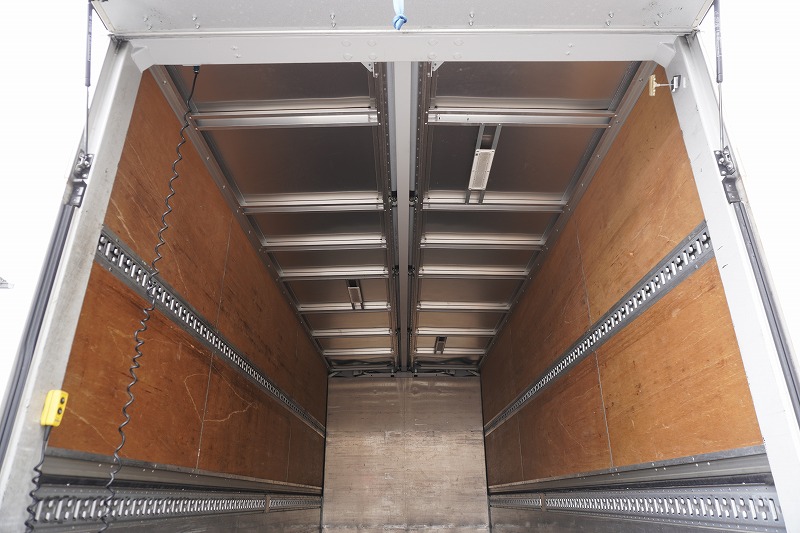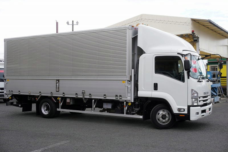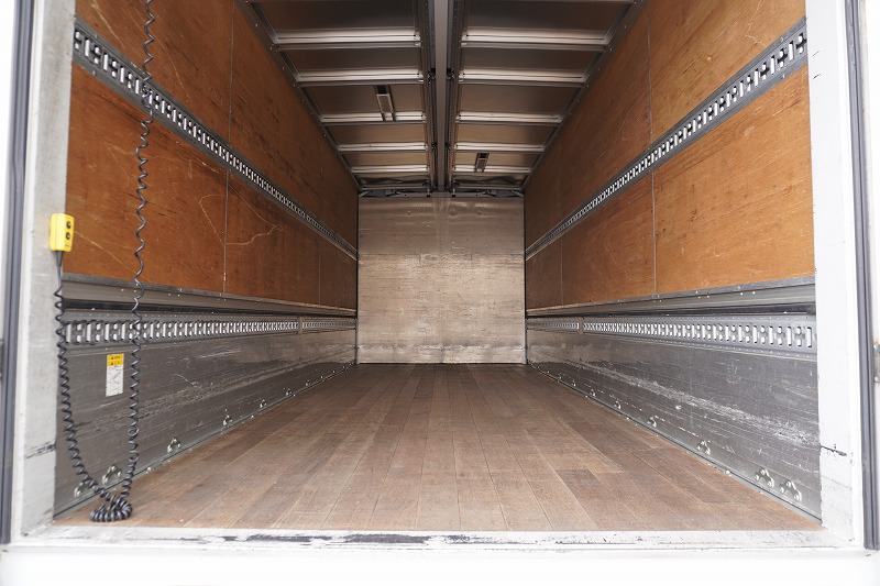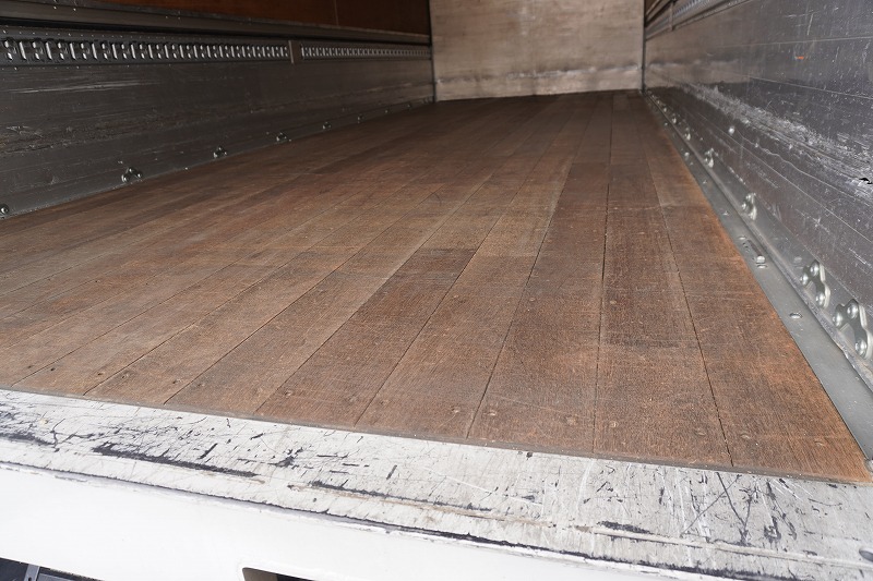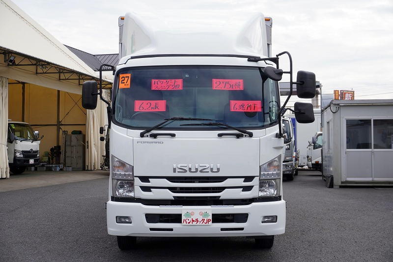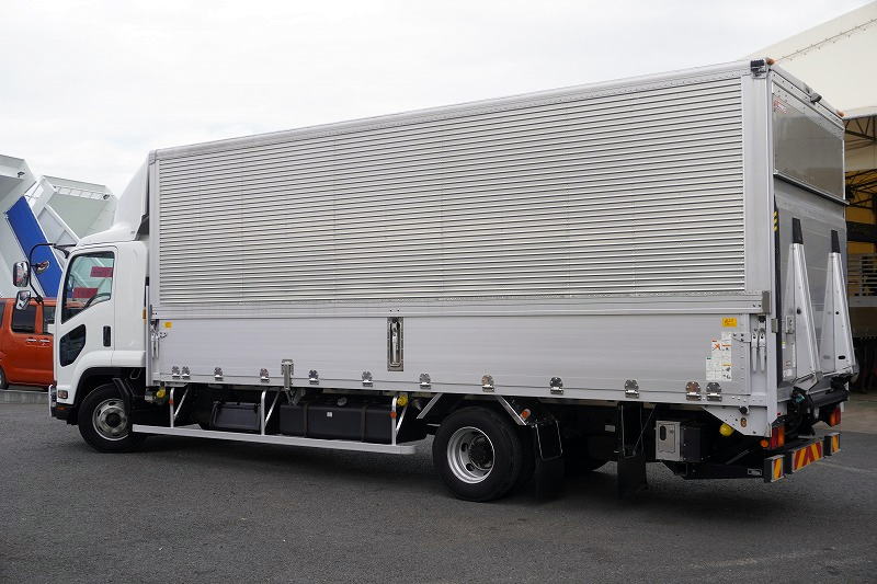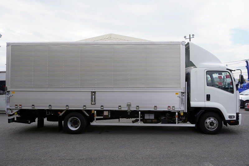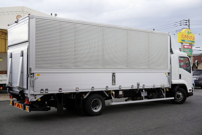 在庫No.K-0332 フォワード 4トン 「標準幅 ベッド付き」 アルミウイング 積載2750kg リーフサス 跳ね上げ式パワーゲート付き 6.2m長 ラッシング2段 導風板 バックカメラ ETC セイコーラック パブコ製 6速MT!