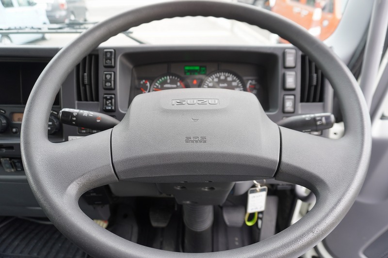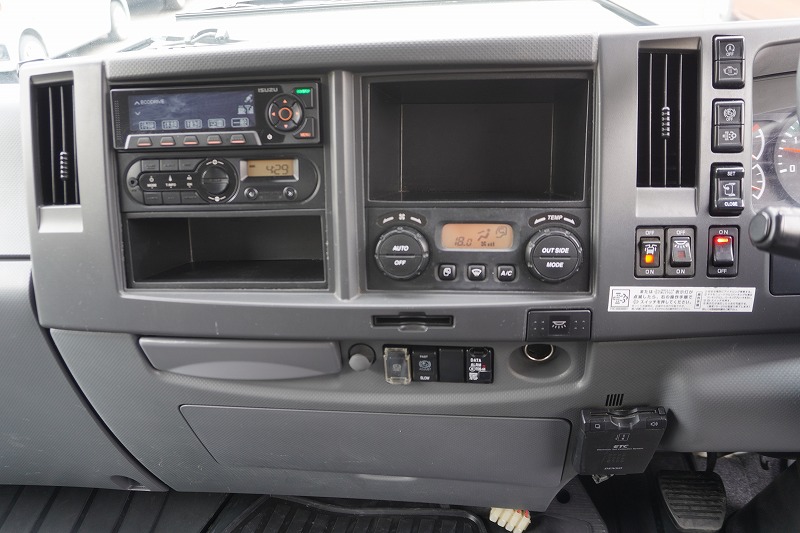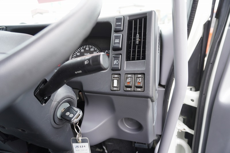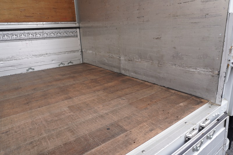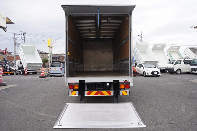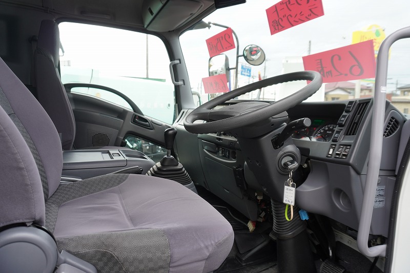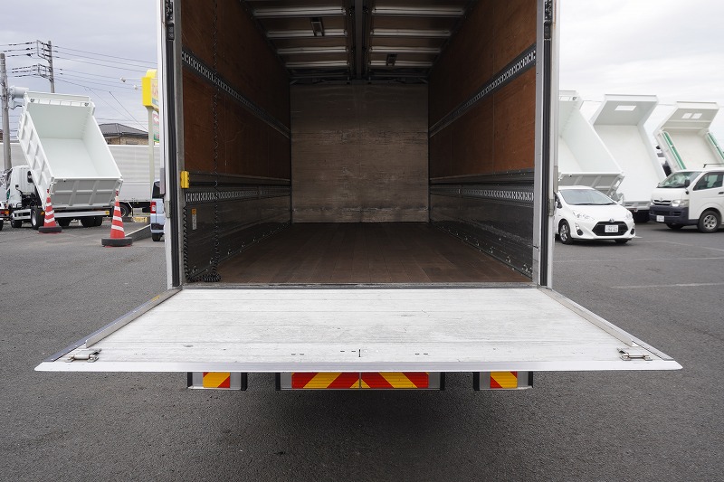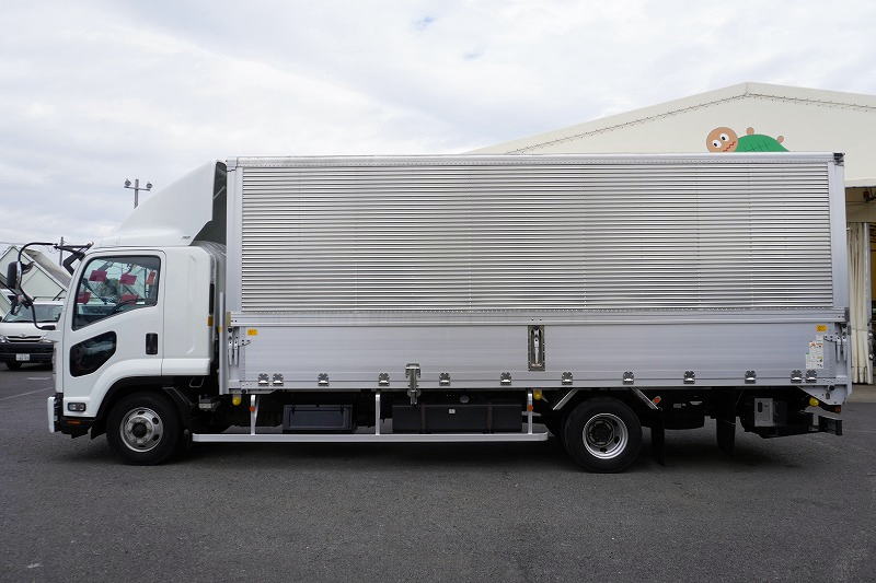 在庫No.K-0332 フォワード 4トン 「標準幅 ベッド付き」 アルミウイング 積載2750kg リーフサス 跳ね上げ式パワーゲート付き 6.2m長 ラッシング2段 導風板 バックカメラ ETC セイコーラック パブコ製 6速MT!