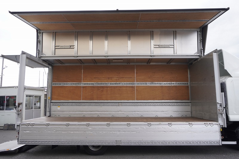 4t 標準巾 寝台付き アルミウイング 2.75トン積 リーフ 跳上パワーゲート 6200mm長 ラッシングレール2段 風防 |
