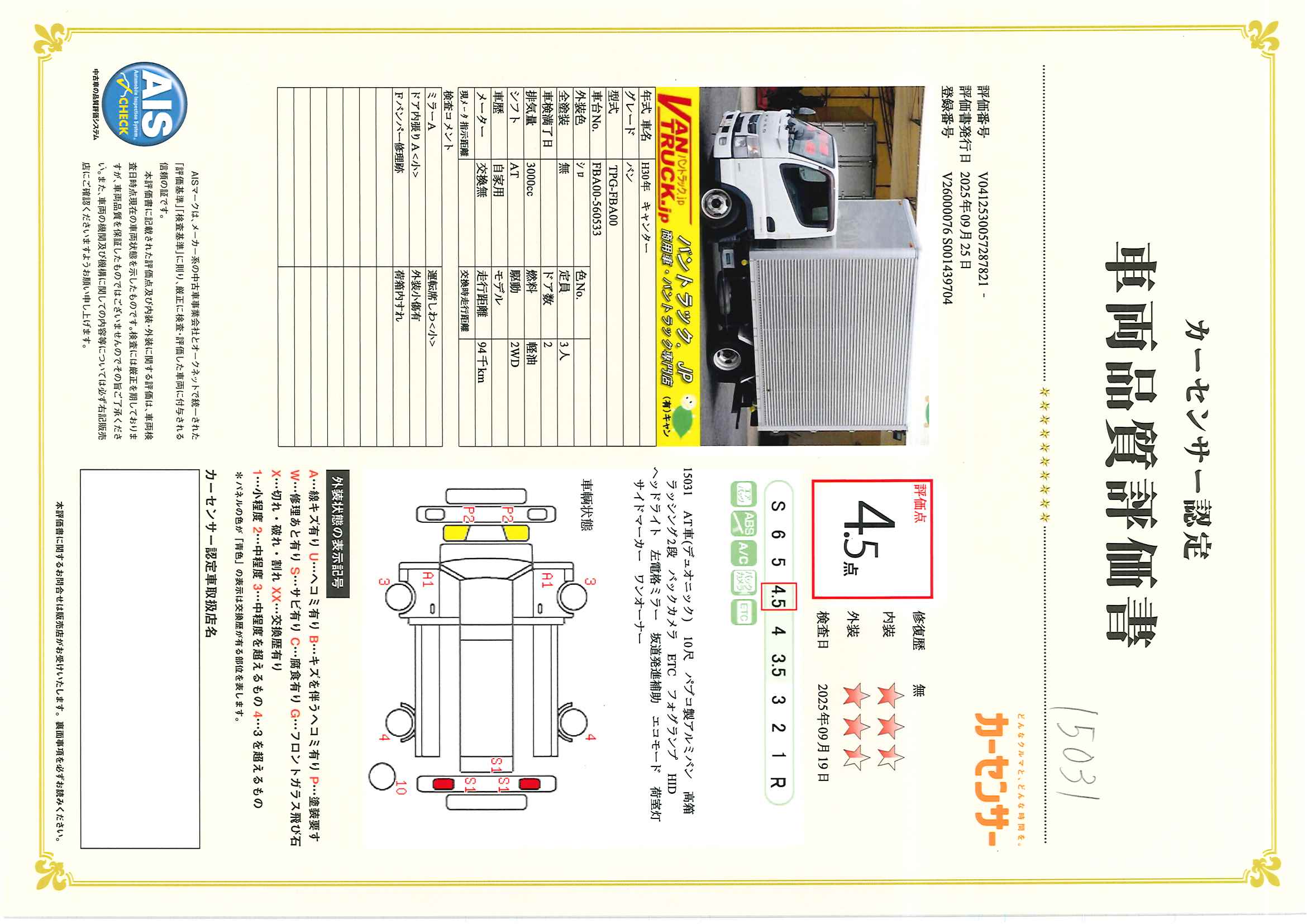 在庫No.K-0031 キャンター 10尺 アルミバン 積載1500kg 高箱 内高2.3m ラッシング2段 バックカメラ ETC フォグランプ パブコ製 ワンオーナー!AT車!