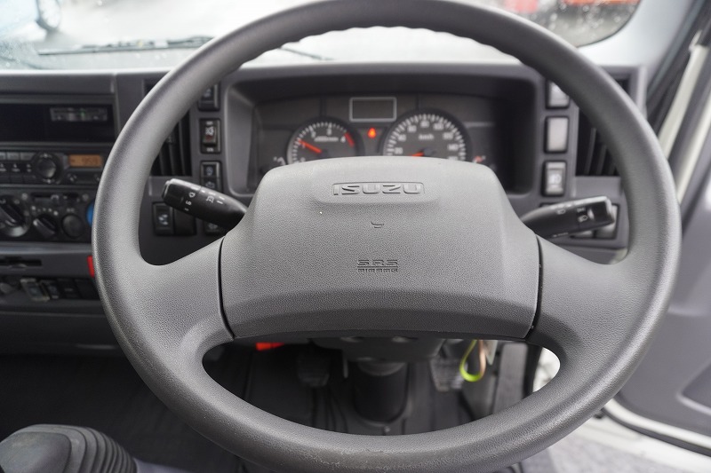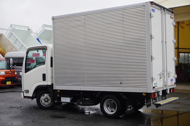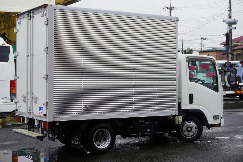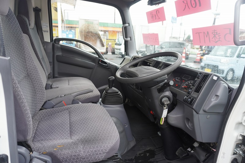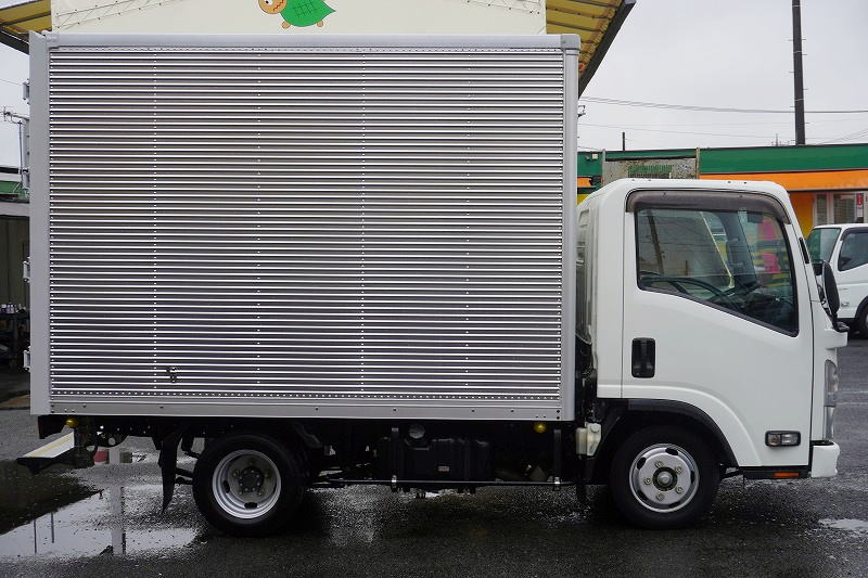 在庫No.K-0094 エルフ 10尺 アルミバン 積載2000kg ラッシング2段 左電格ミラー 坂道発進補助 バックカメラ ETC2.0 90度ストッパー フォグランプ 全低床 日本フルハーフ製 5速MT!