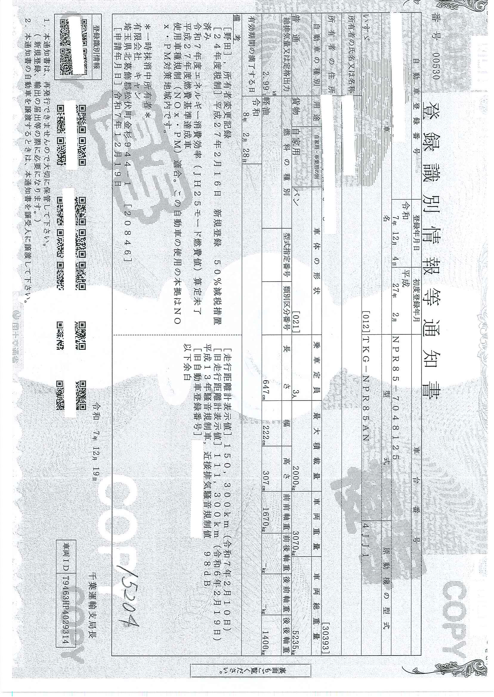 当店が把握できる車検証の表記より