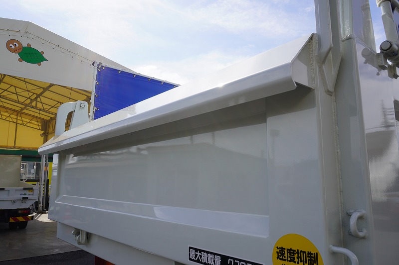 在庫No.K-0053 (未使用) ファイター 増トン 「ベッド付き」 土砂ダンプ 新明和製 一方開 積載7300kg 電動コボレーン 船底型 鳥居シートデッキ&ラダー 砂切 メッキパーツ HIDヘッドライト 坂道発進補助 衝突軽減ブレーキ 車線逸脱警報 6速MT! 車検「R7年12月まで!」