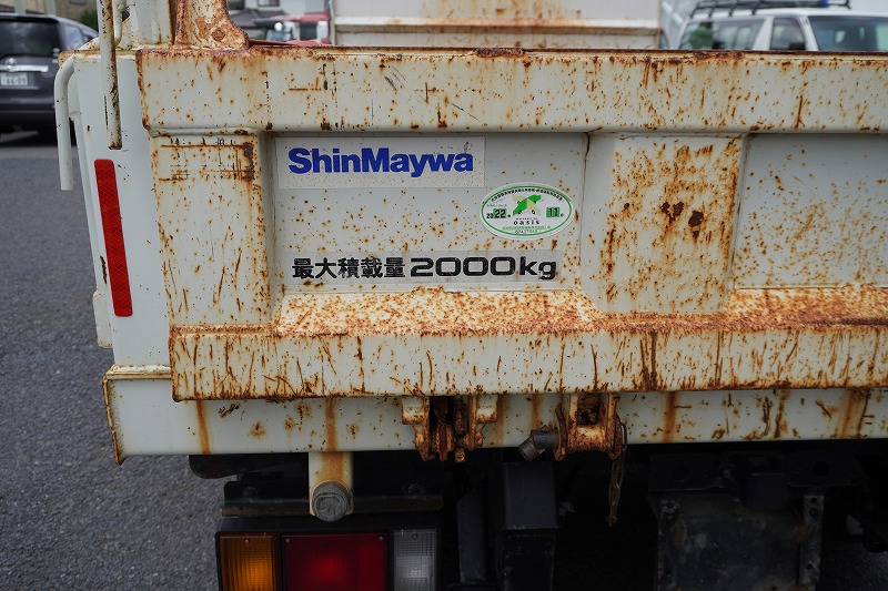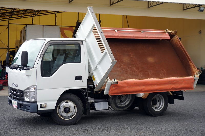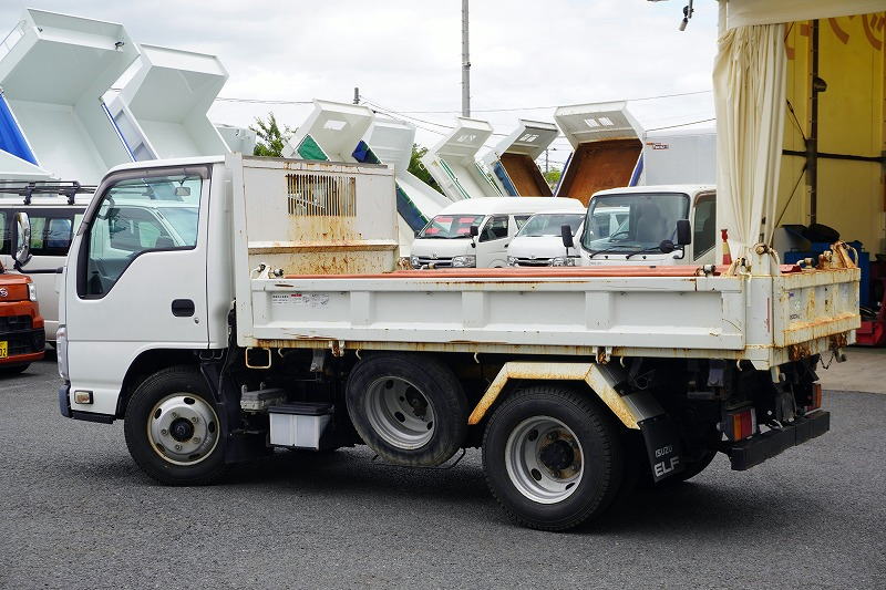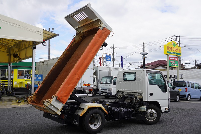在庫No.C-0947 エルフ 強化 三転ダンプ 新明和製 積載2000kg 三方開 手動コボレーン リアダンプピン 鳥居アングル補強 左電格ミラー 坂道発進補助 ETC 6速MT!