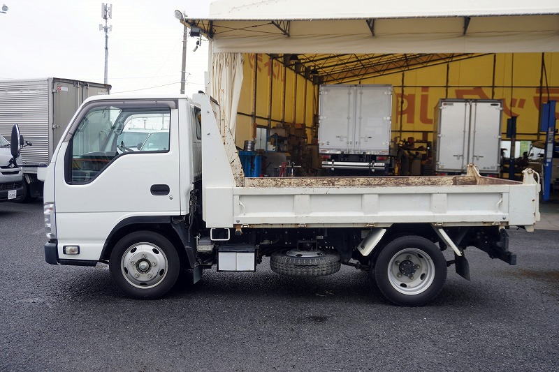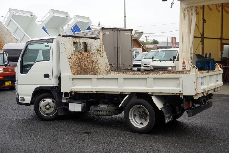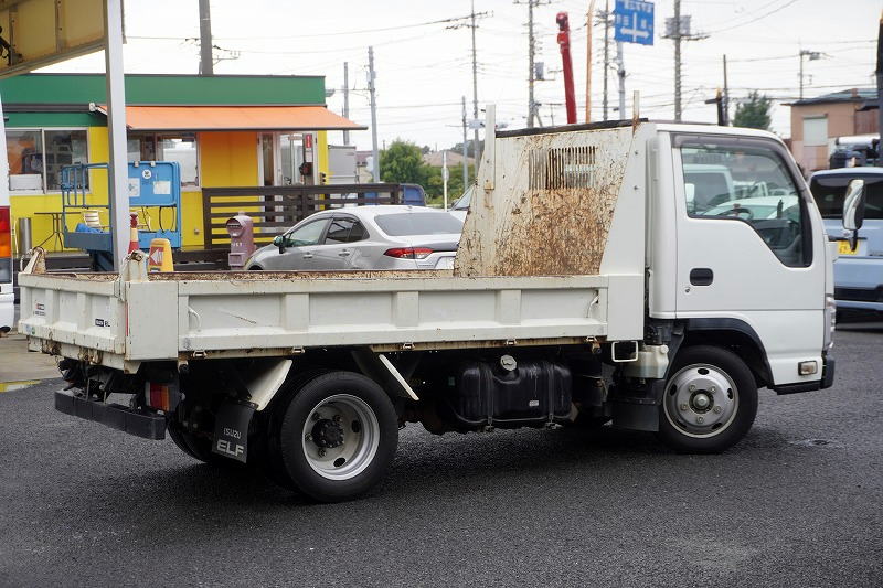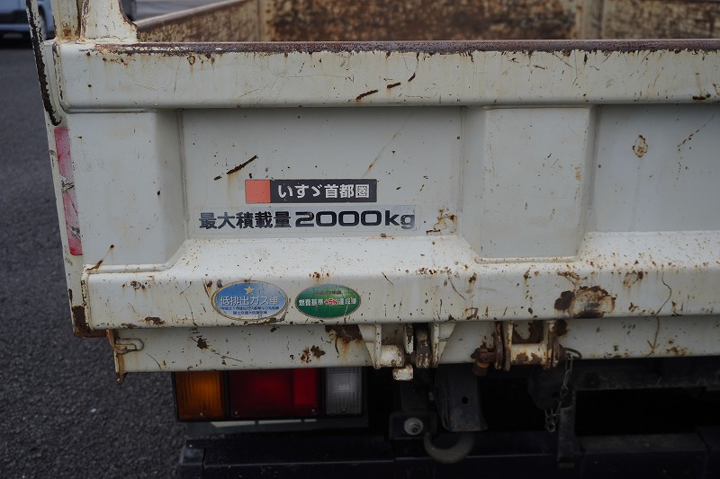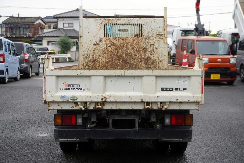 在庫No.K-0106 エルフ 強化ダンプ 極東製 積載2000kg 三方開 鳥居ツノ出し ダンプピン ETC 坂道発進補助 フルフラットロー 5速MT!