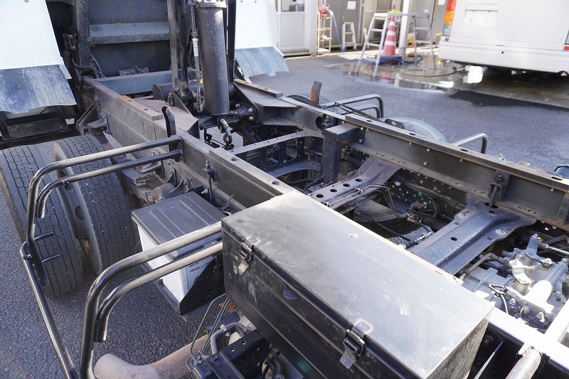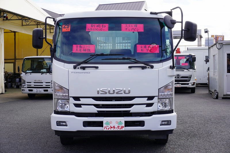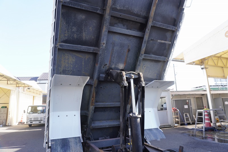 在庫No.K-0047 フォワード 4トン 「ベッドレス」 強化ダンプ 一方開 新明和製 積載3600kg 電動コボレーン 鳥居アングル補強 社外リアバンパー ダンプピン ETC 6速MT! 車検「R8年5月まで!」