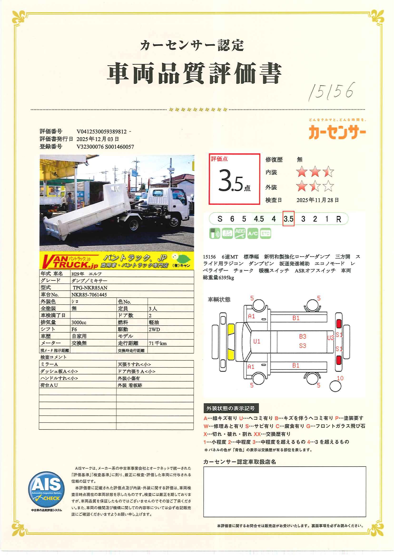 在庫No.K-0156 エルフ 「標準幅」 強化 ローダーダンプ 新明和製 三方開 積載3000kg スライド用ラジコン ダンプピン ETC 坂道発進補助 キーレス 6速MT!