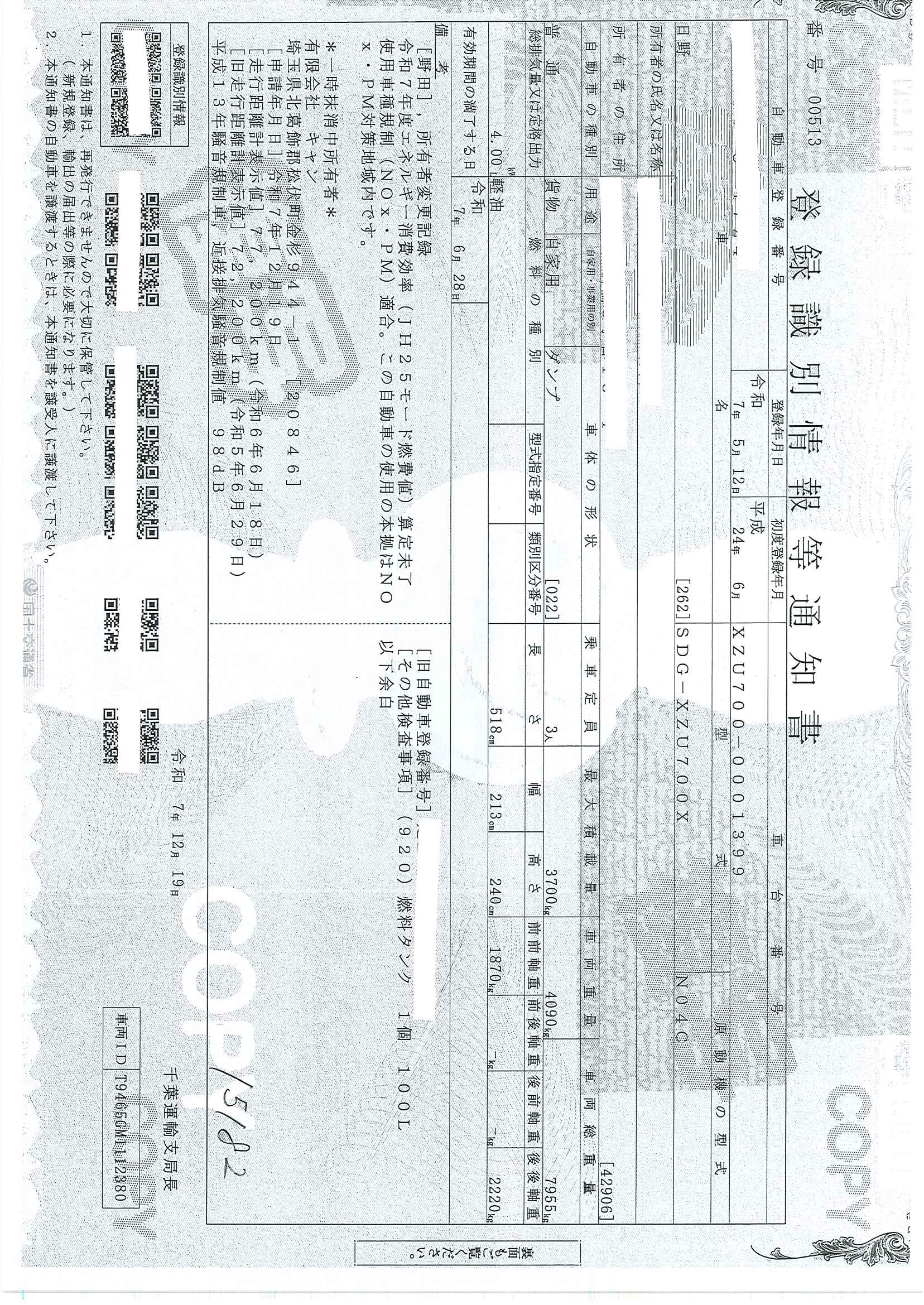 当店が把握できる車検証の表記より