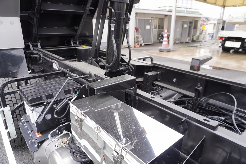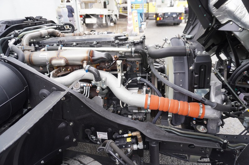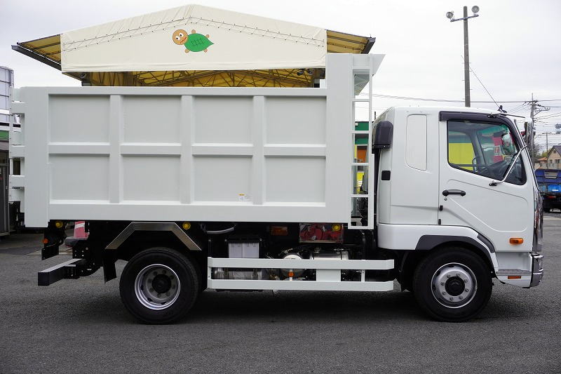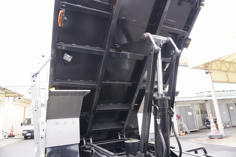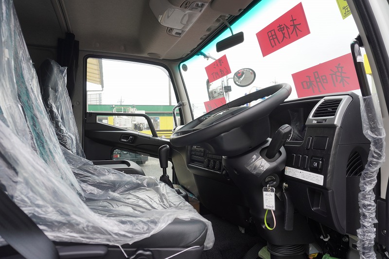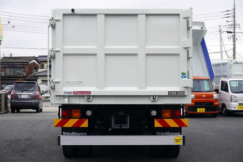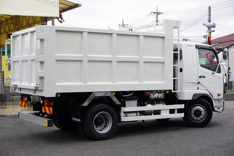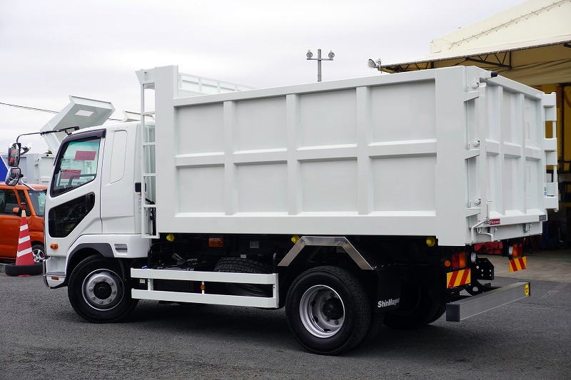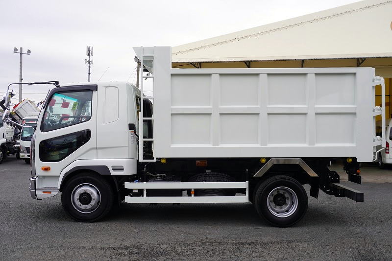 在庫No.K-0292 (未使用) ファイター 増トン 「ベッド付き 土砂禁止」 深ダンプ 新明和製 一方開 積載6600kg リア片開き扉 鳥居シートデッキ&ラダー 坂道発進補助 ETC2.0 衝突軽減ブレーキ 車線逸脱警報 オートエアコン メッキパーツ 6速MT!