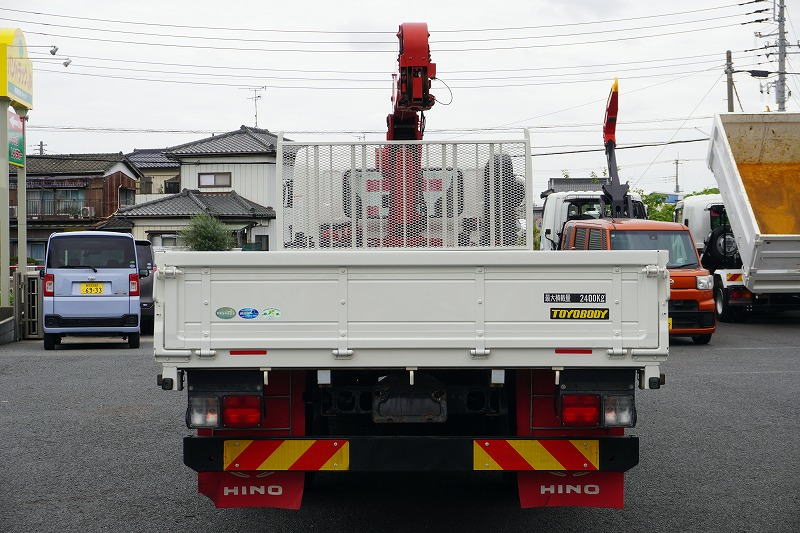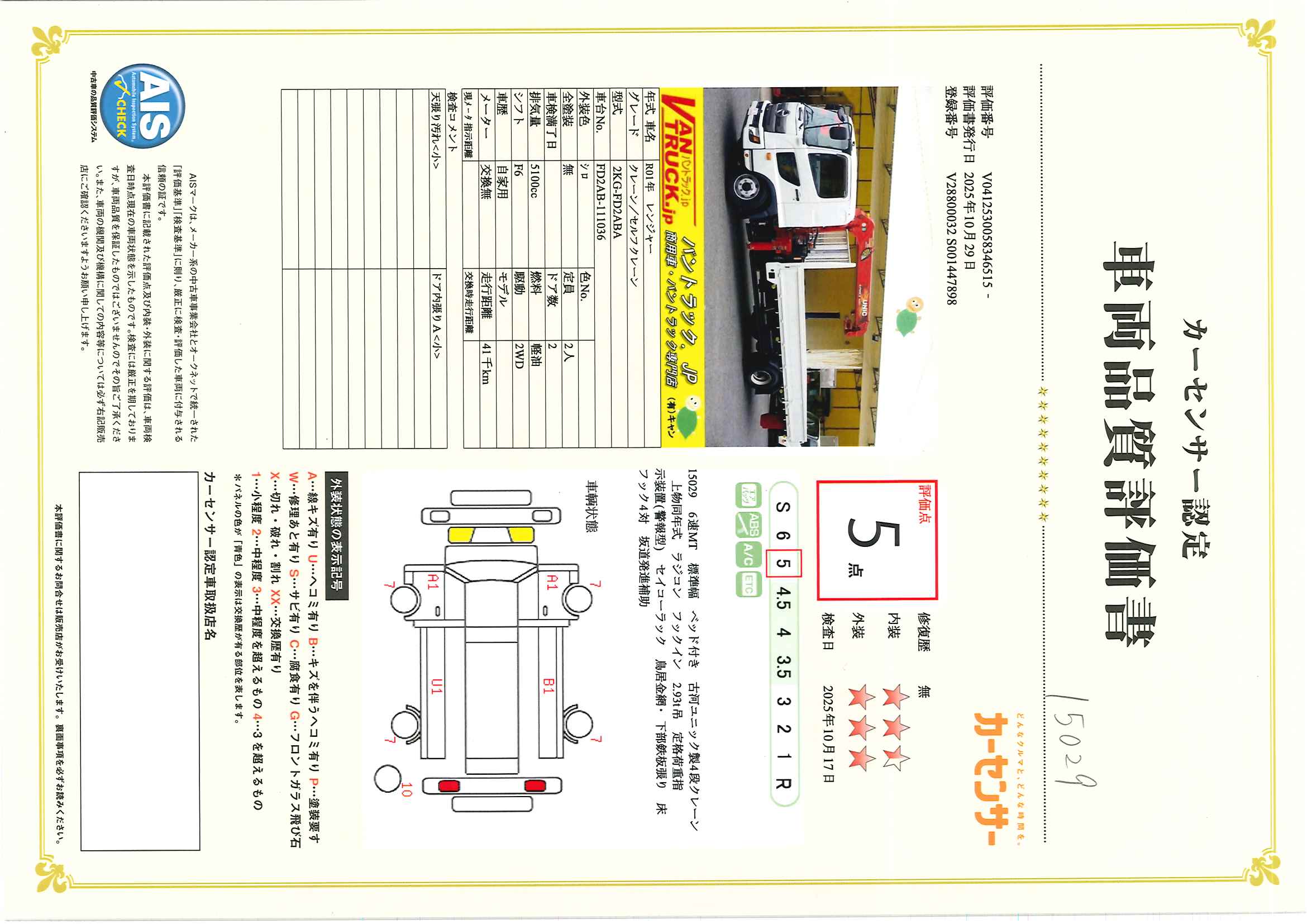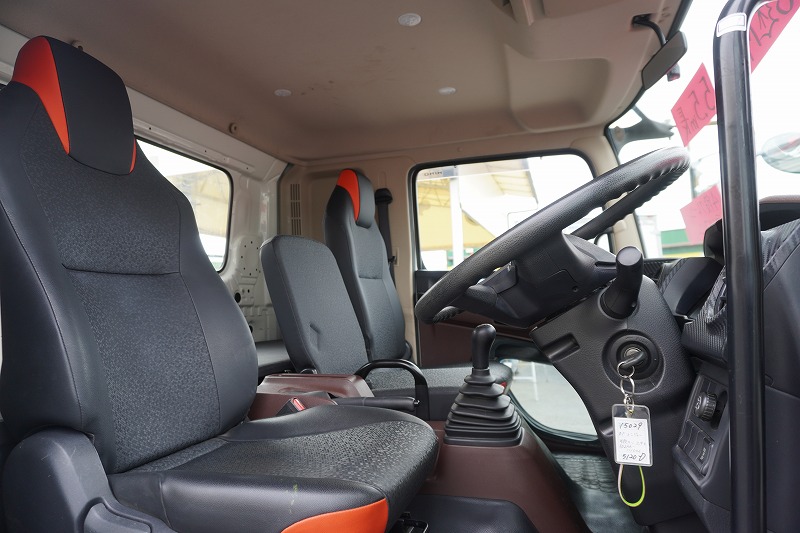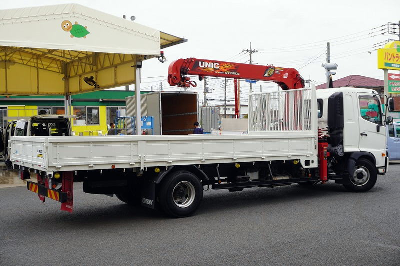 在庫No.K-0029 レンジャー 4トン 「標準幅 ベッド付き」 4段クレーン 積載2400kg 古河ユニック製 ラジコン フックイン 2.93t吊 5.5m長 床フック4対 セイコーラック 鳥居金網張り&下部鉄板張り 坂道発進補助 ETC 6速MT!